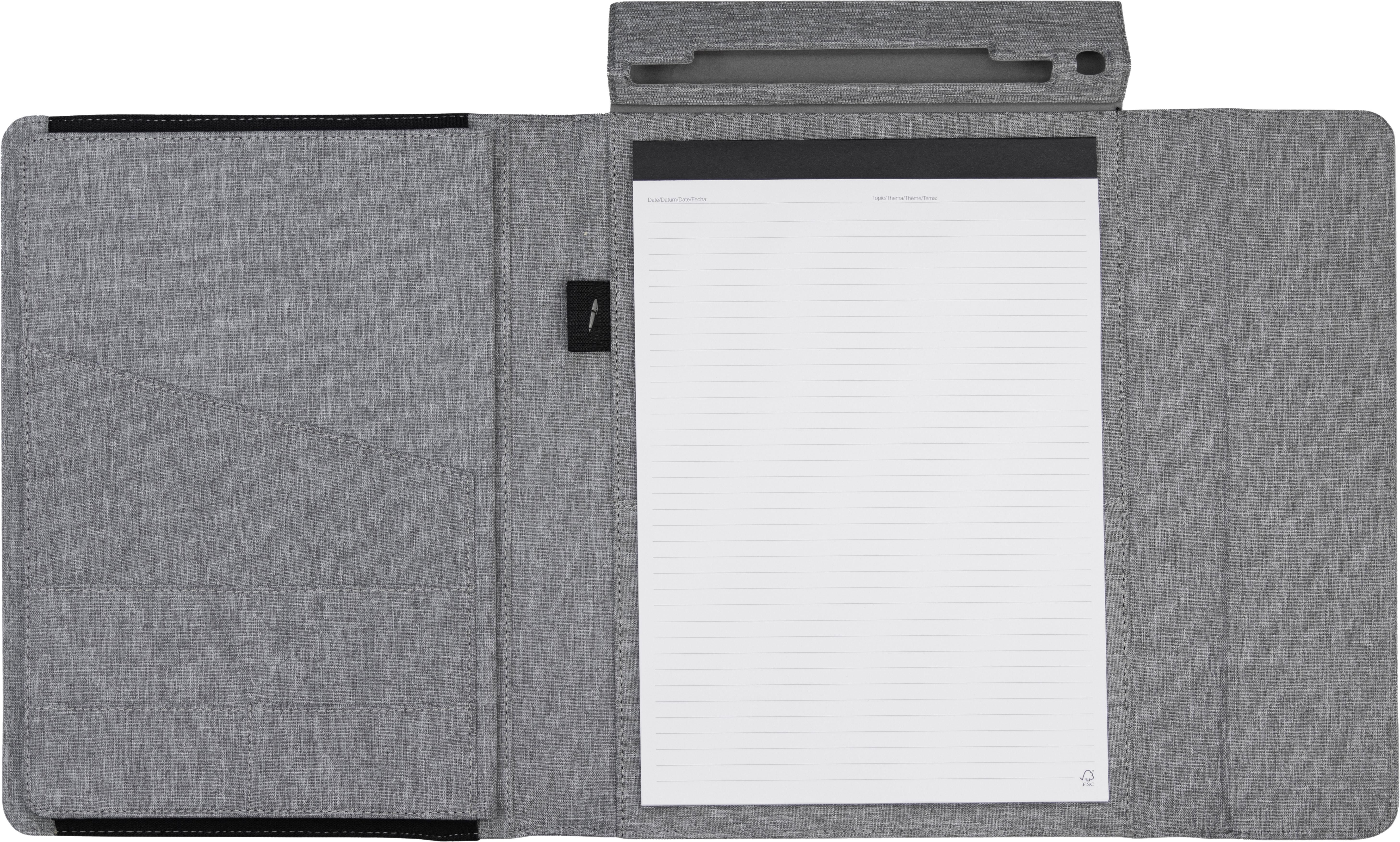 Le conférencier Noty Folio, fabriqué à partir de bouteilles PET recyclées et de papier certifié FSC, est un conférencier professionnel haut de gamme, parfait pour les professionnels occupés et organisés. Il comprend de l'espace pour un bloc-notes A4, une pochette pour tablette/ordinateur portable jusqu'à 13' et des compartiments pour les indispensables comme les cartes de visite. Ce conférencier complet est doté d'une fermeture magnétique, d'une couverture rigide et d'un organiseur de bureau dépliable. Idéal pour les nomades et les professionnels en déplacement.