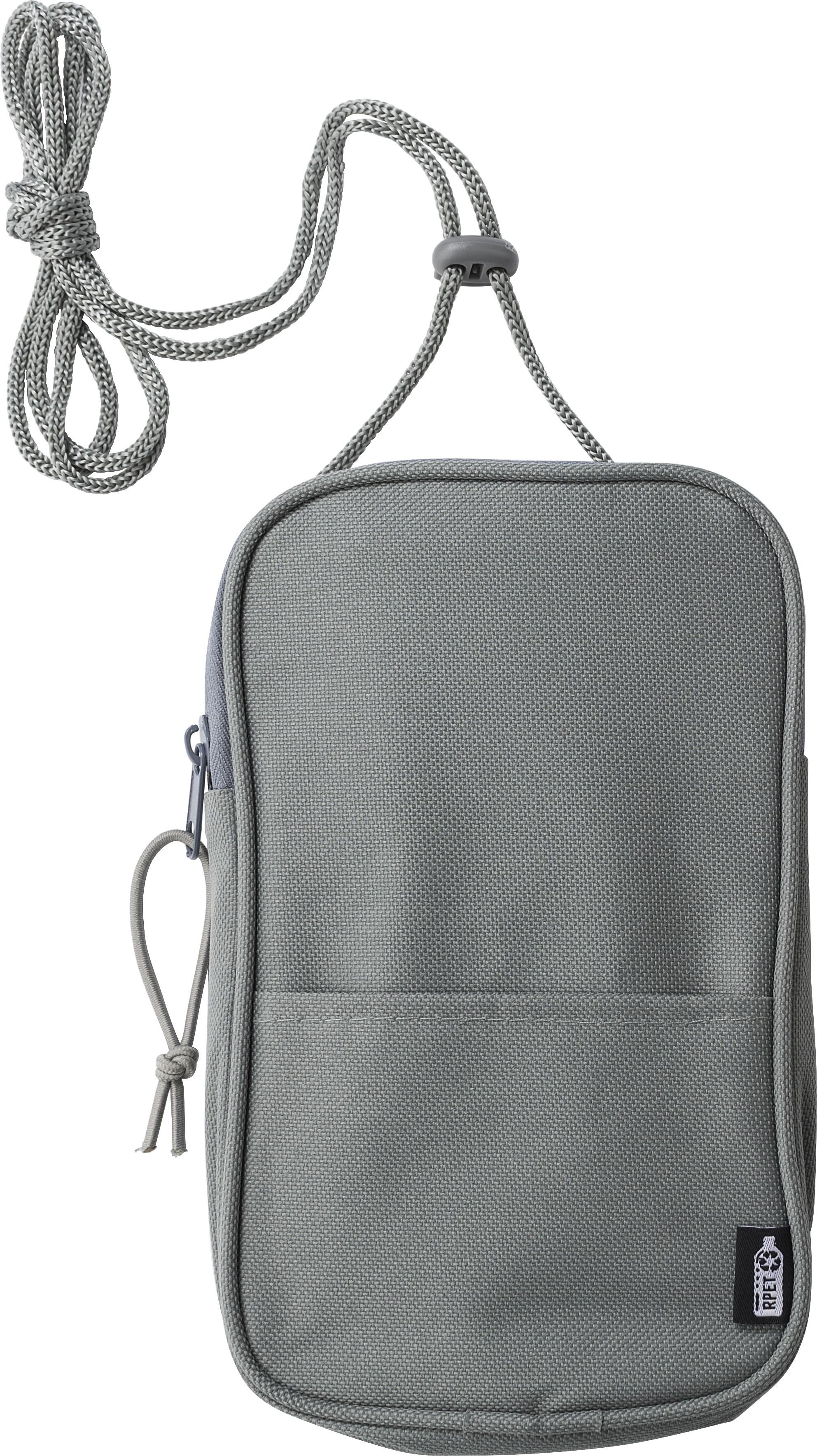 Étui zippé en polyester rPET 600D avec tour de cou ajustable et poche frontale.