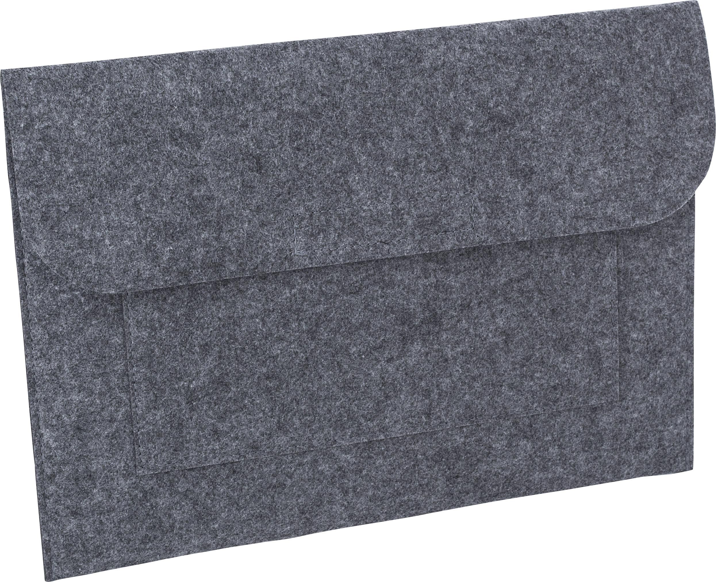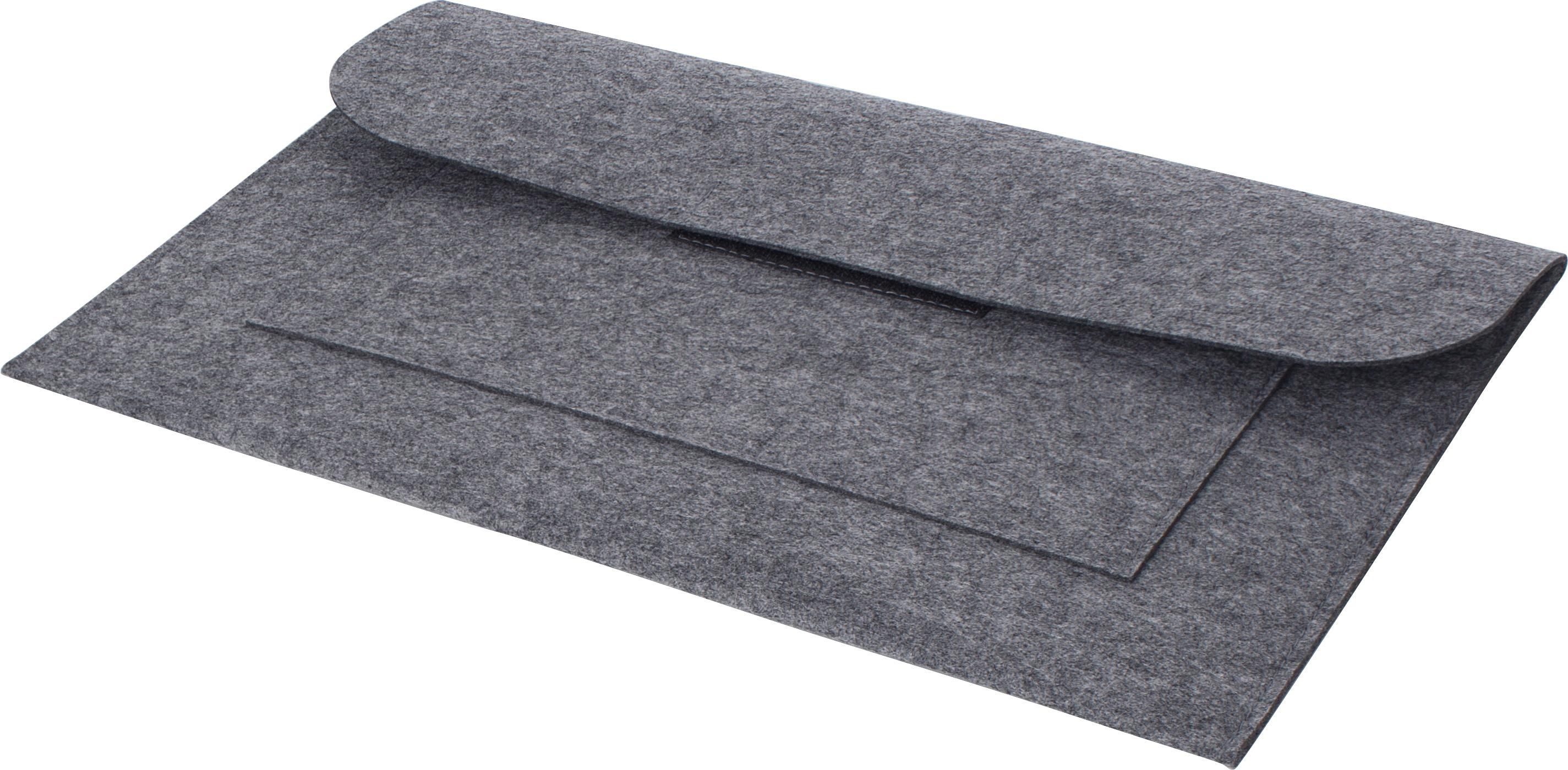Pochette en feutre rPET de 3 mm d'épaisseur avec poche frontale et fermeture velcro.