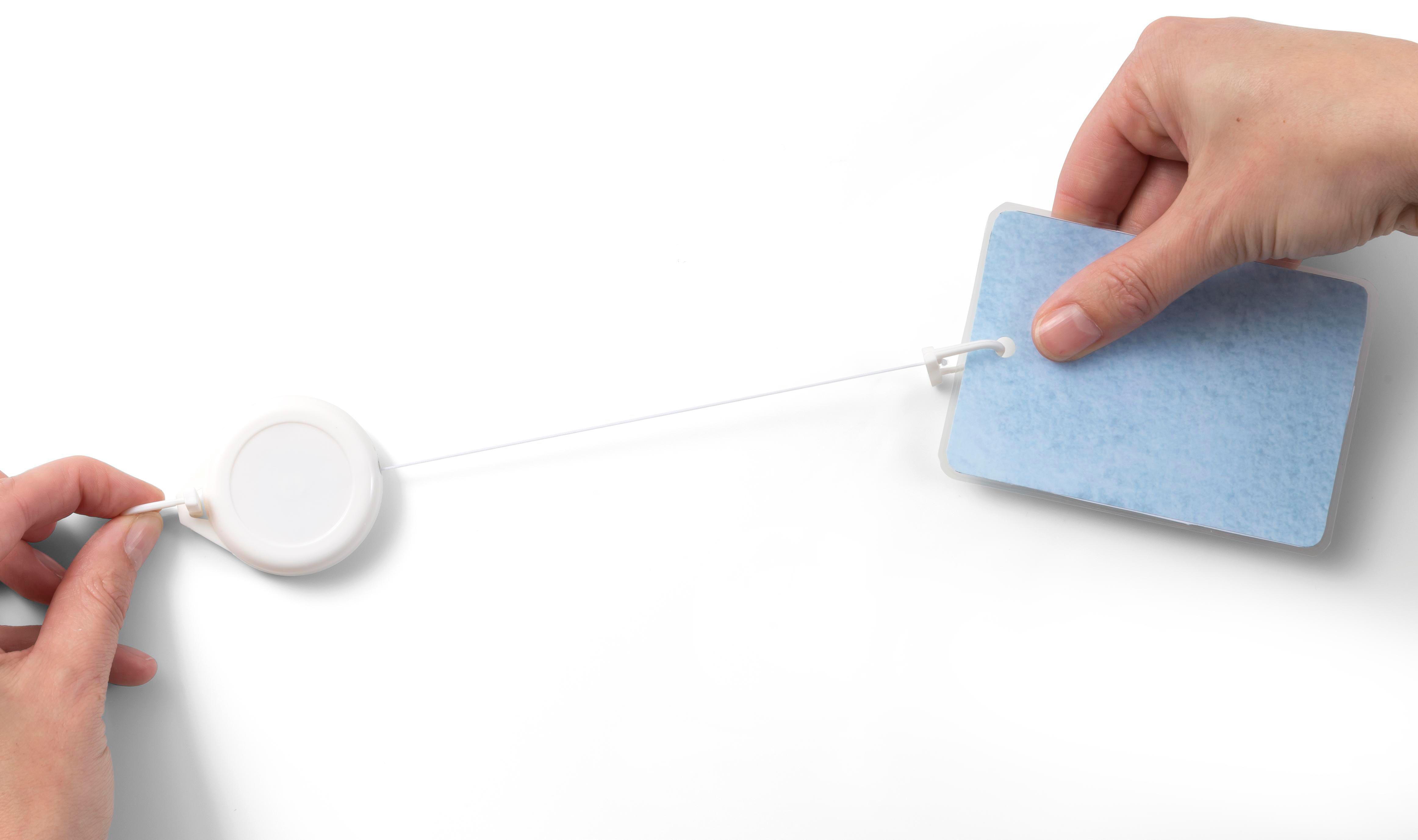 Porte-badge en plastique avec cordon d'une longueur de 80 cm.
