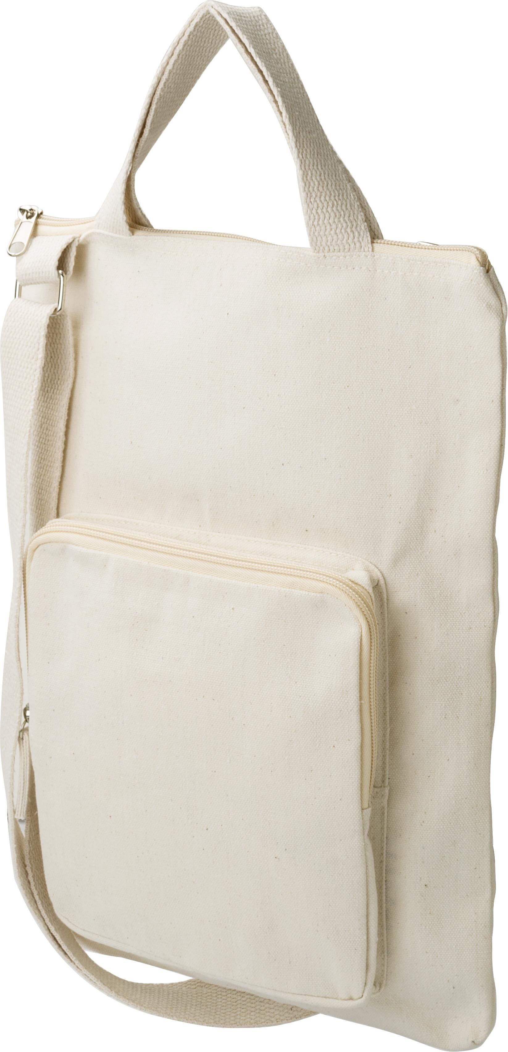 Porte-ordinateur de 15'' zippé en toile coton canvas 340 g/m² avec poche frontale zippée et bandoulière ajustable.