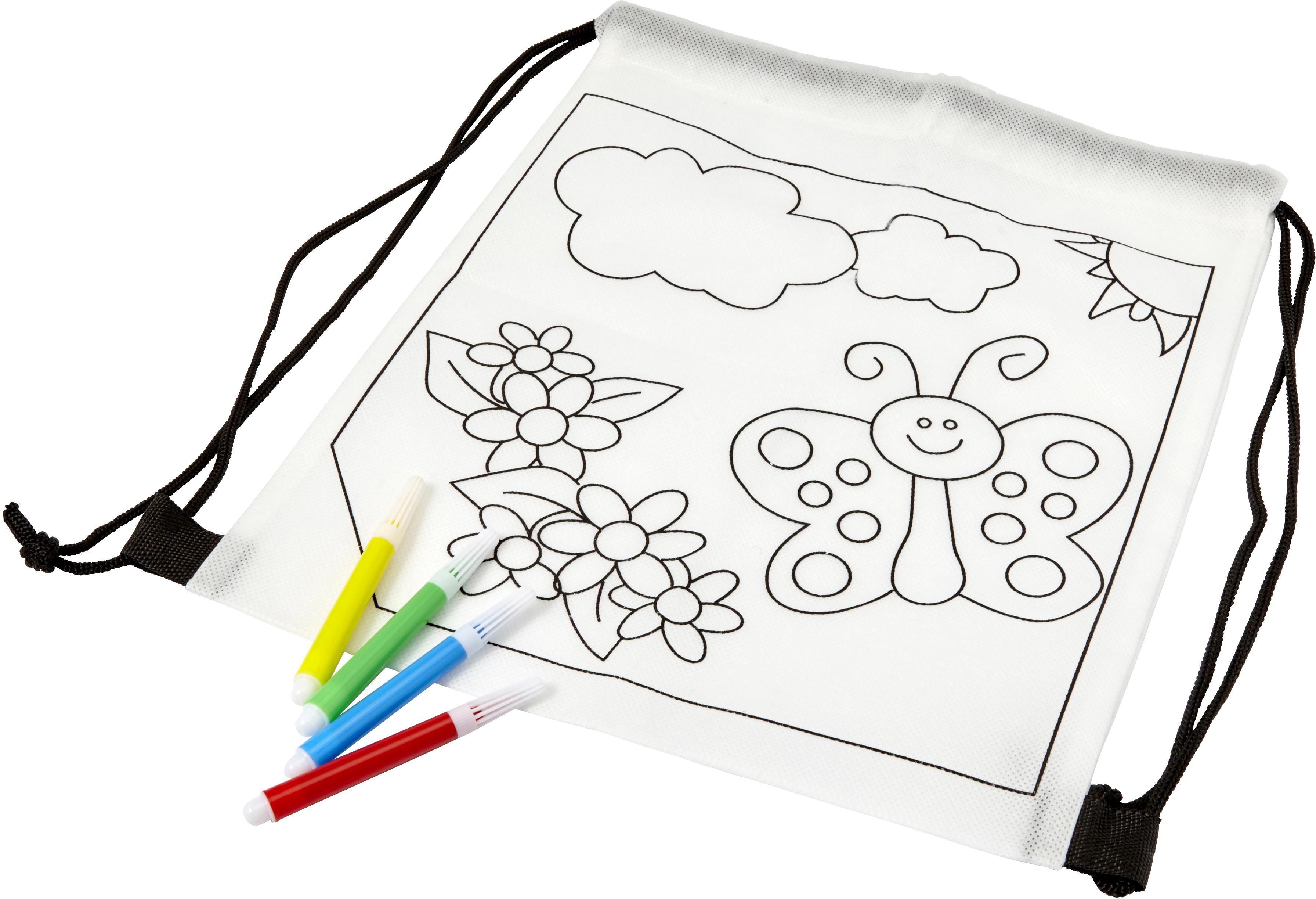 Sac à dos en non-tissé 80 gr/m² à colorier, livré avec 4 feutres.