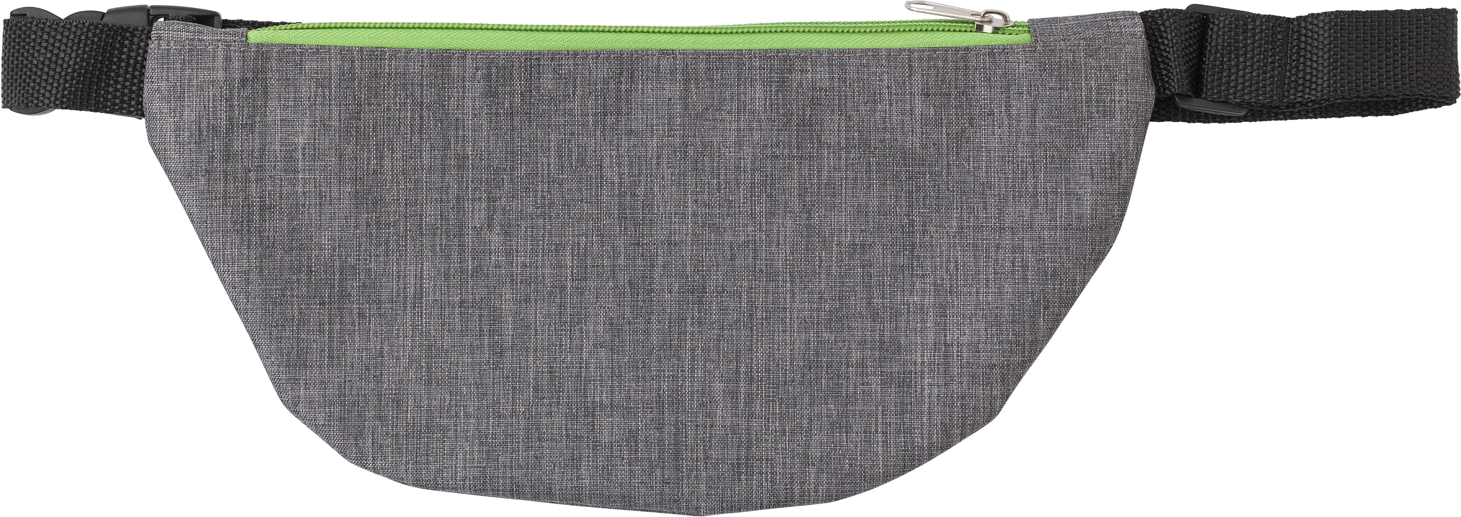 Sac banane en polyester 300D avec 2 poches zippées et bandoulière réglable.