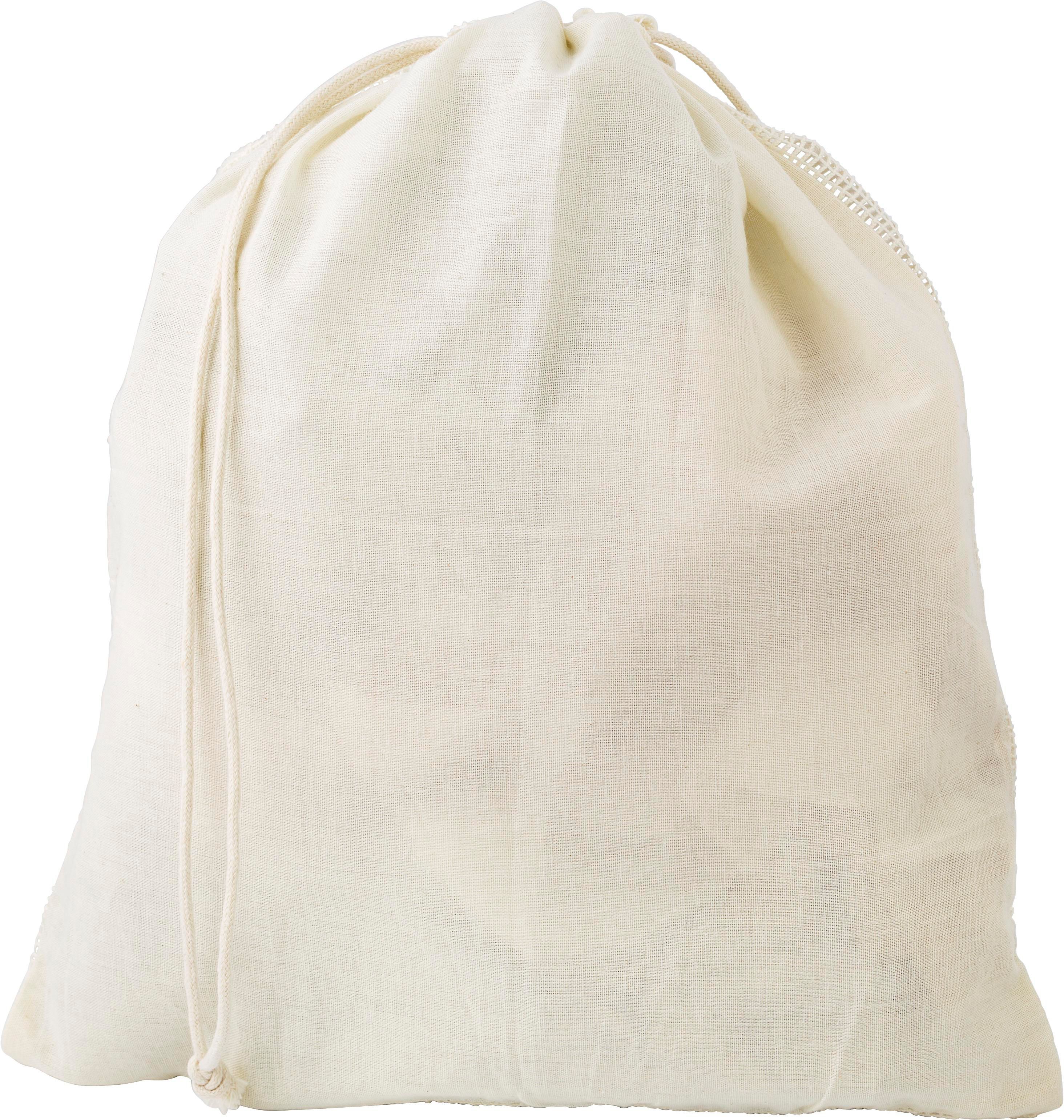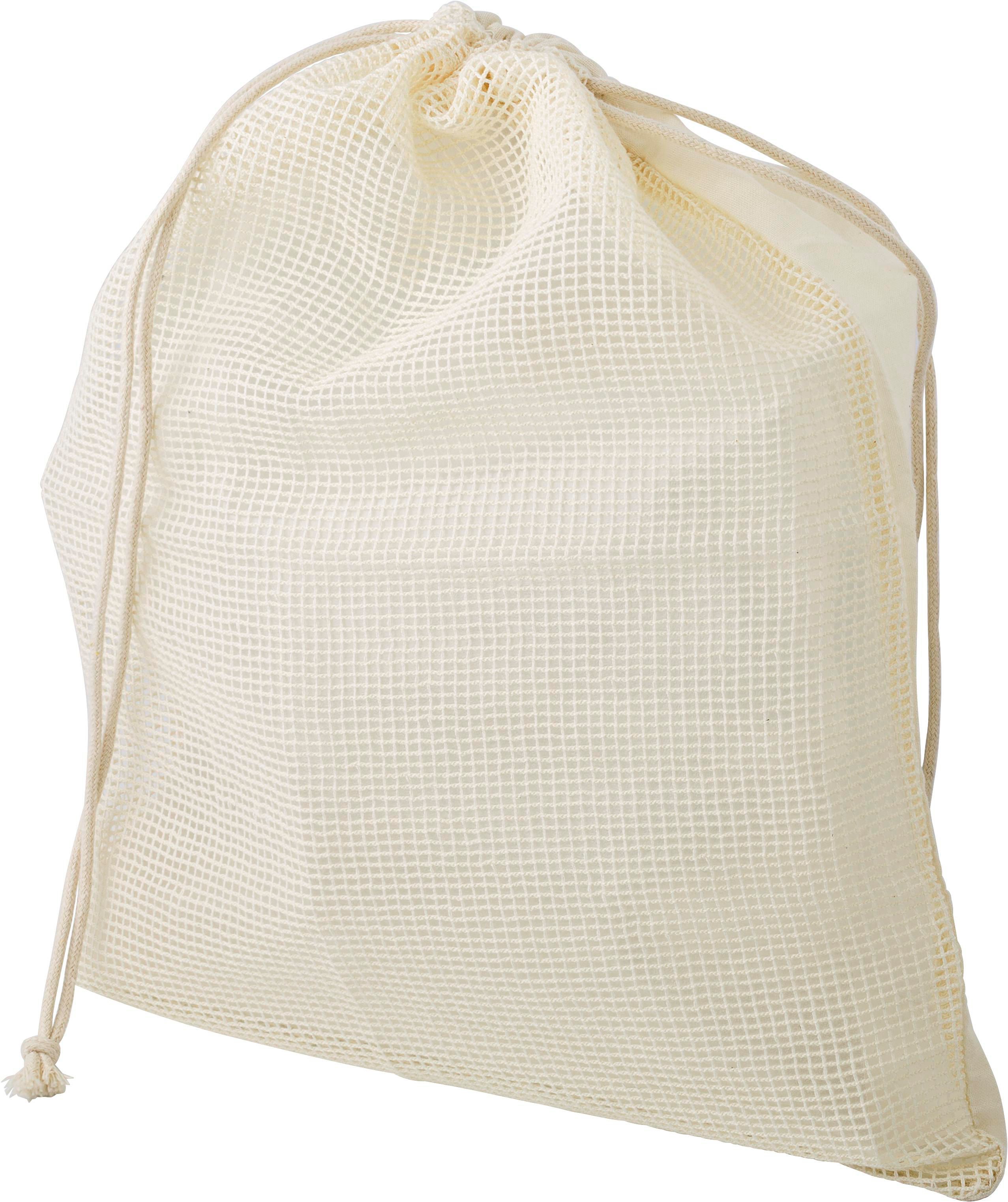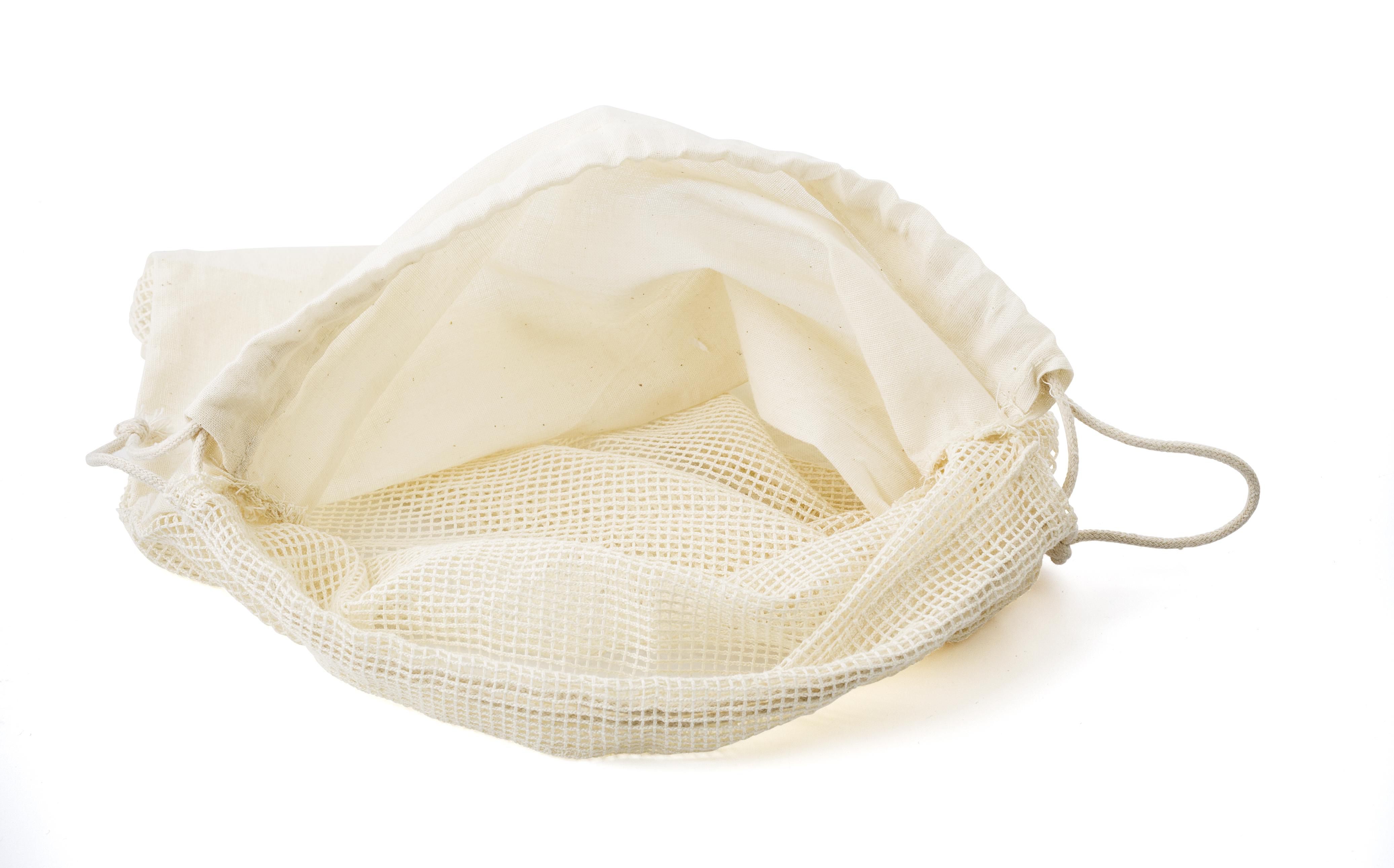 Sac filet en coton bio pour fruits et légumes avec cordon de serrage.