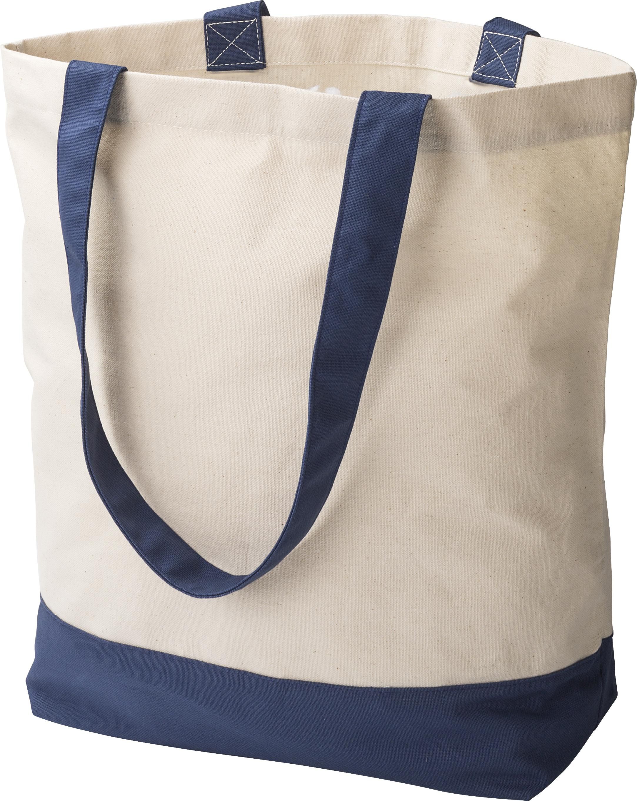 Sac shopping bicolore en coton canvas de 280 g/m² à anses longues avec poche intérieure.