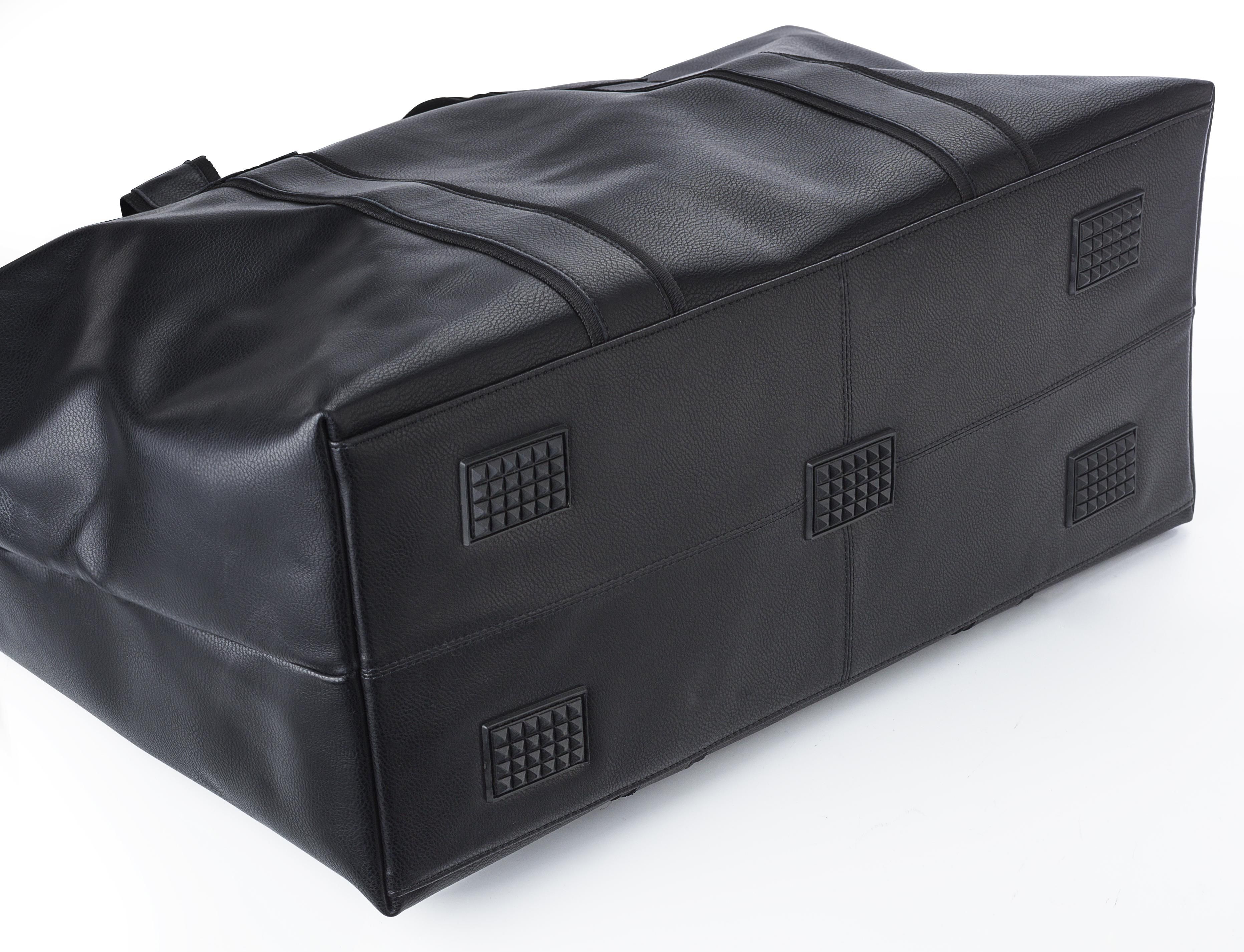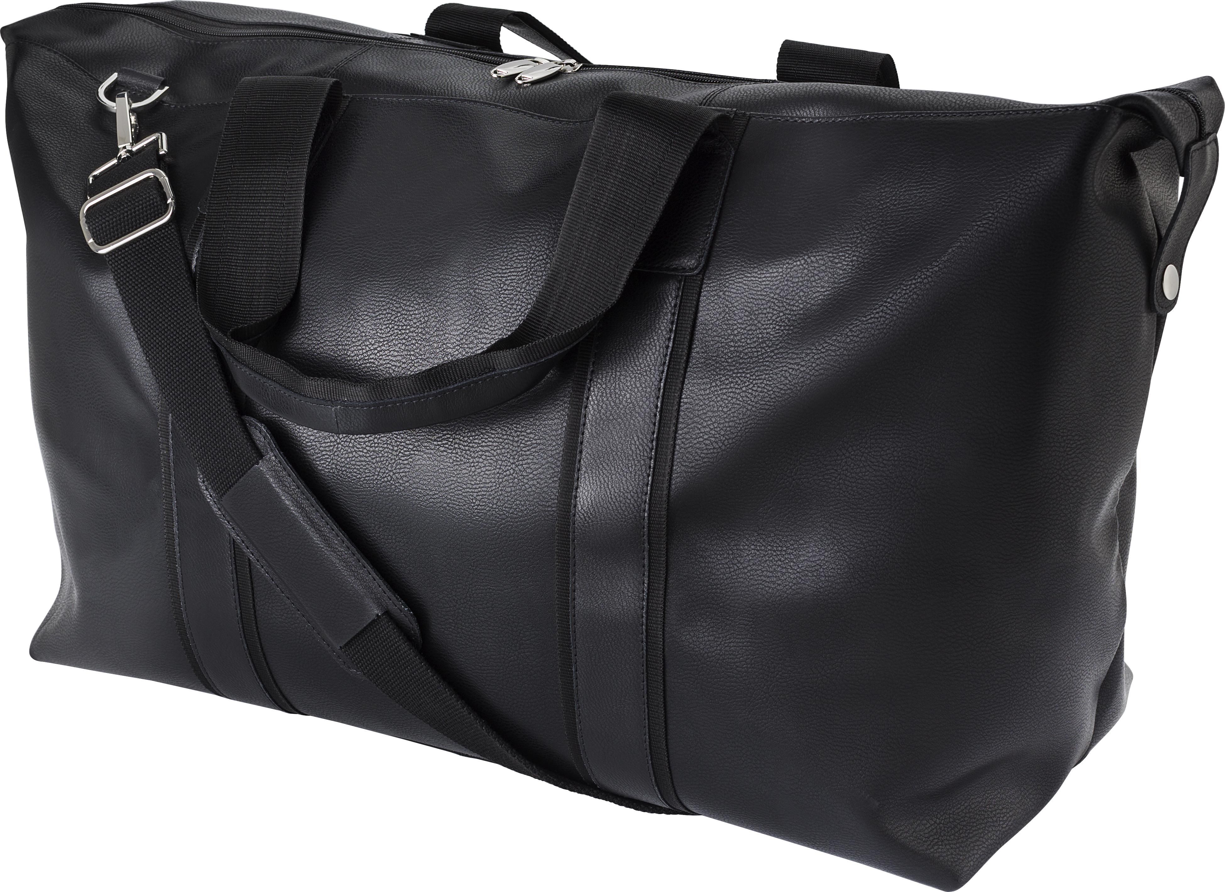 Sac week-end en cuir avec fermeture zippée comprenant un compartiment, muni de poignées en cuir et d'une bandoulière en nylon.
