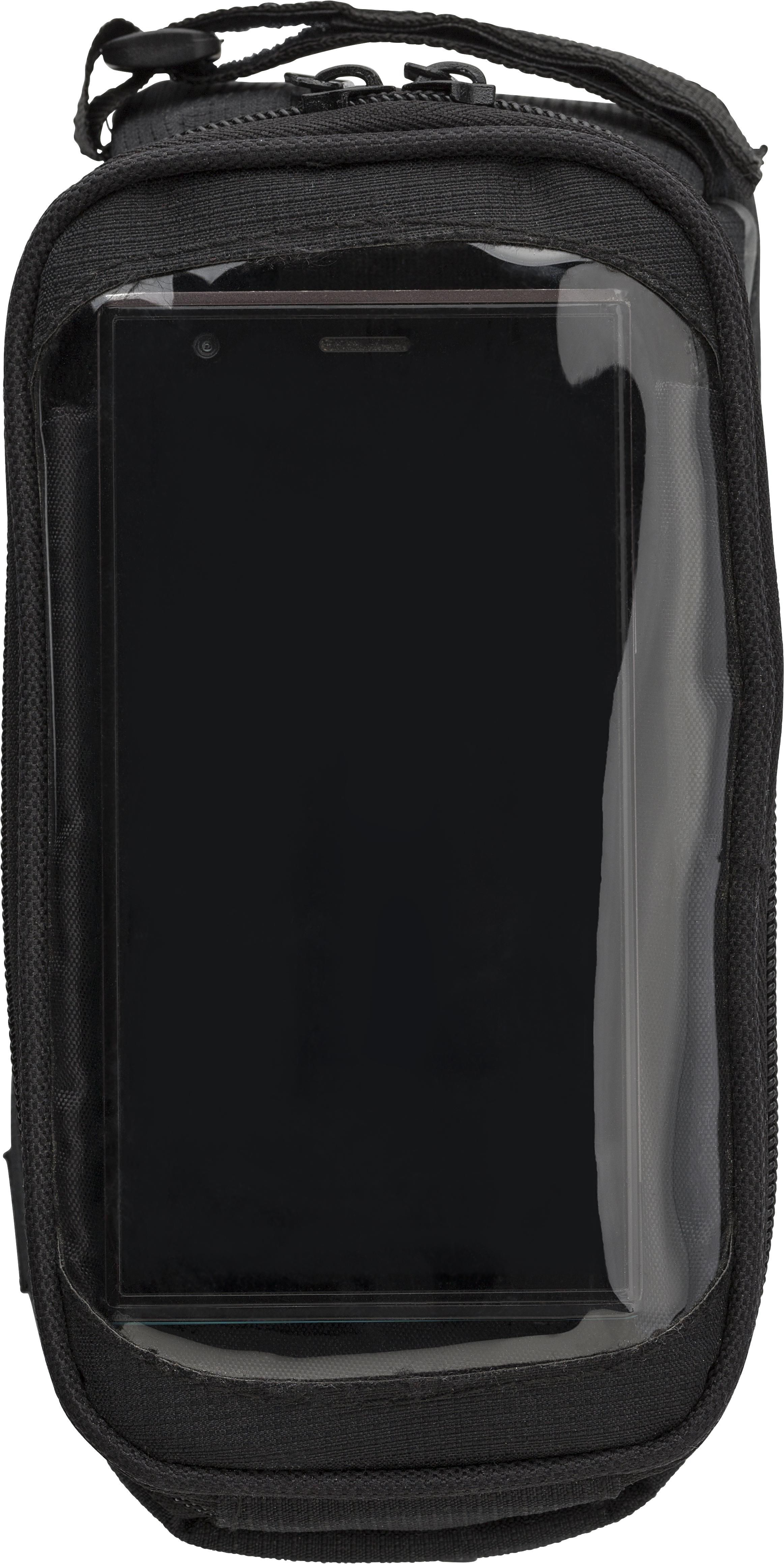 Sacoche pour vélo en polyester 600D adaptable au guidon d'un vélo avec compartiment en PVC pour smartphone, dont les fonctions restent opérationnelles, et sortie audio.