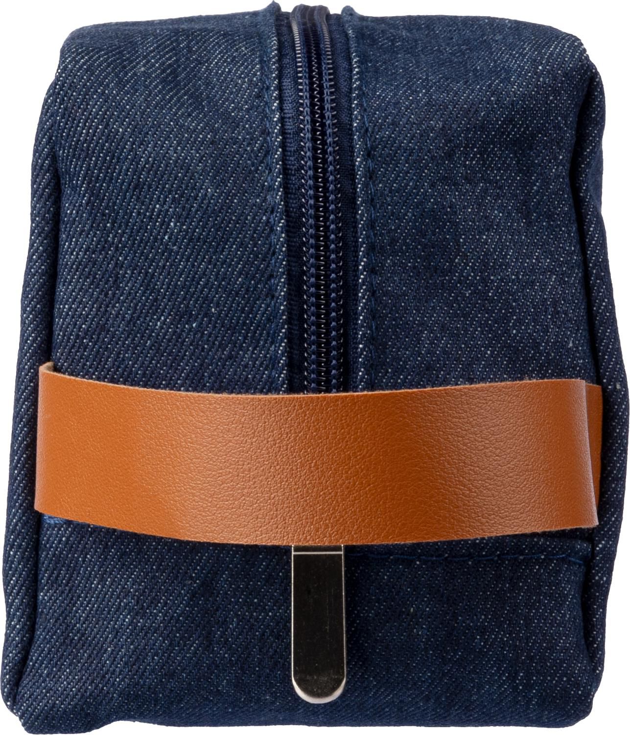 Trousse de toilette zippée en denim et PU.