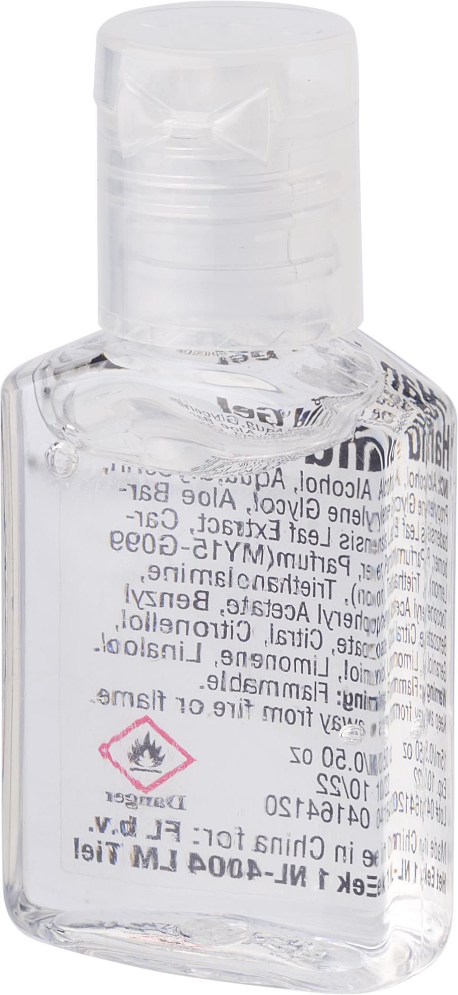 Flacon de gel de 15ml composé de 62% d'alcool.