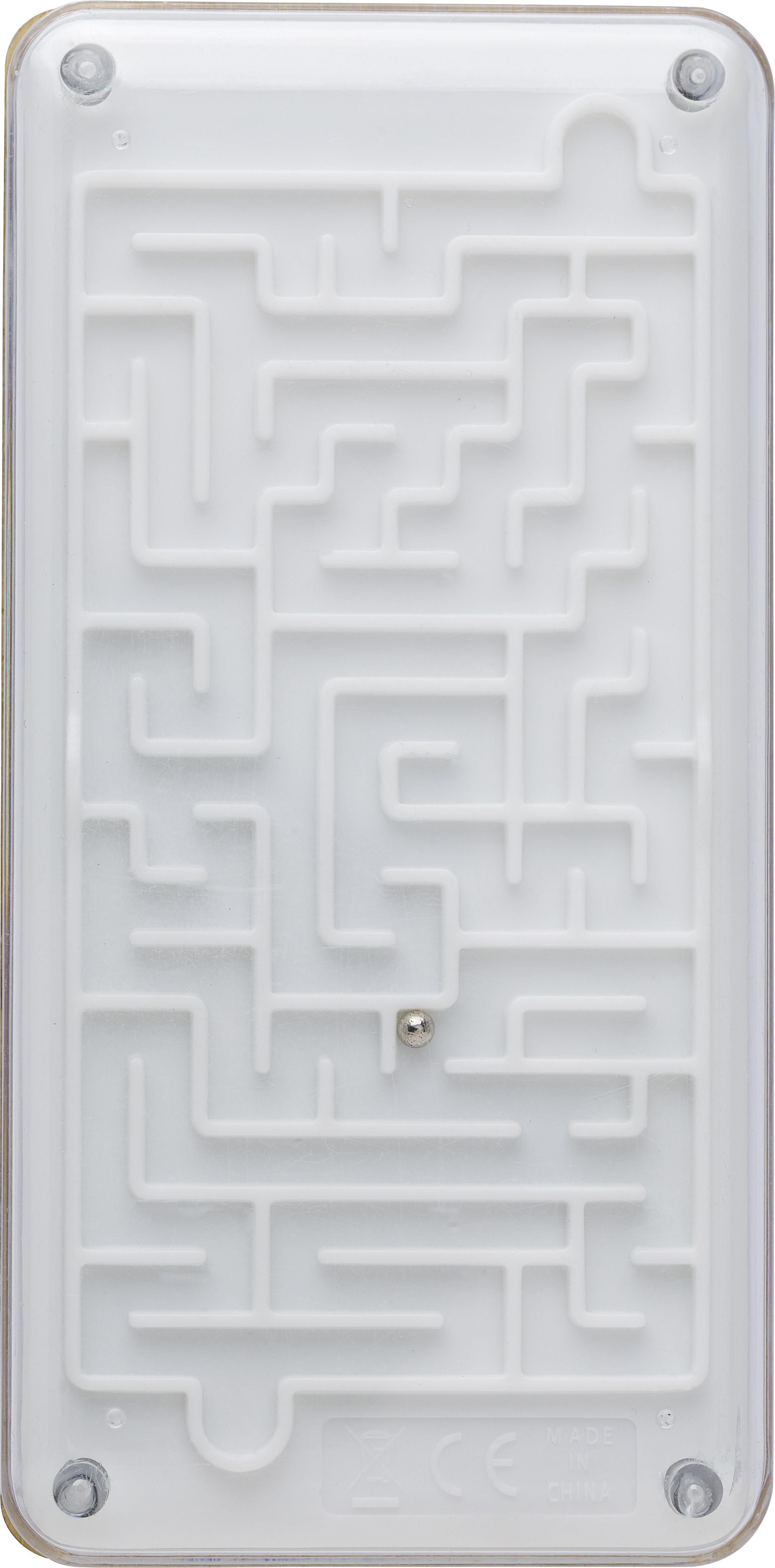 Calculatrice de poche dual power en bambou de 8 chiffres munie d'un jeu de labyrinthe au verso.
