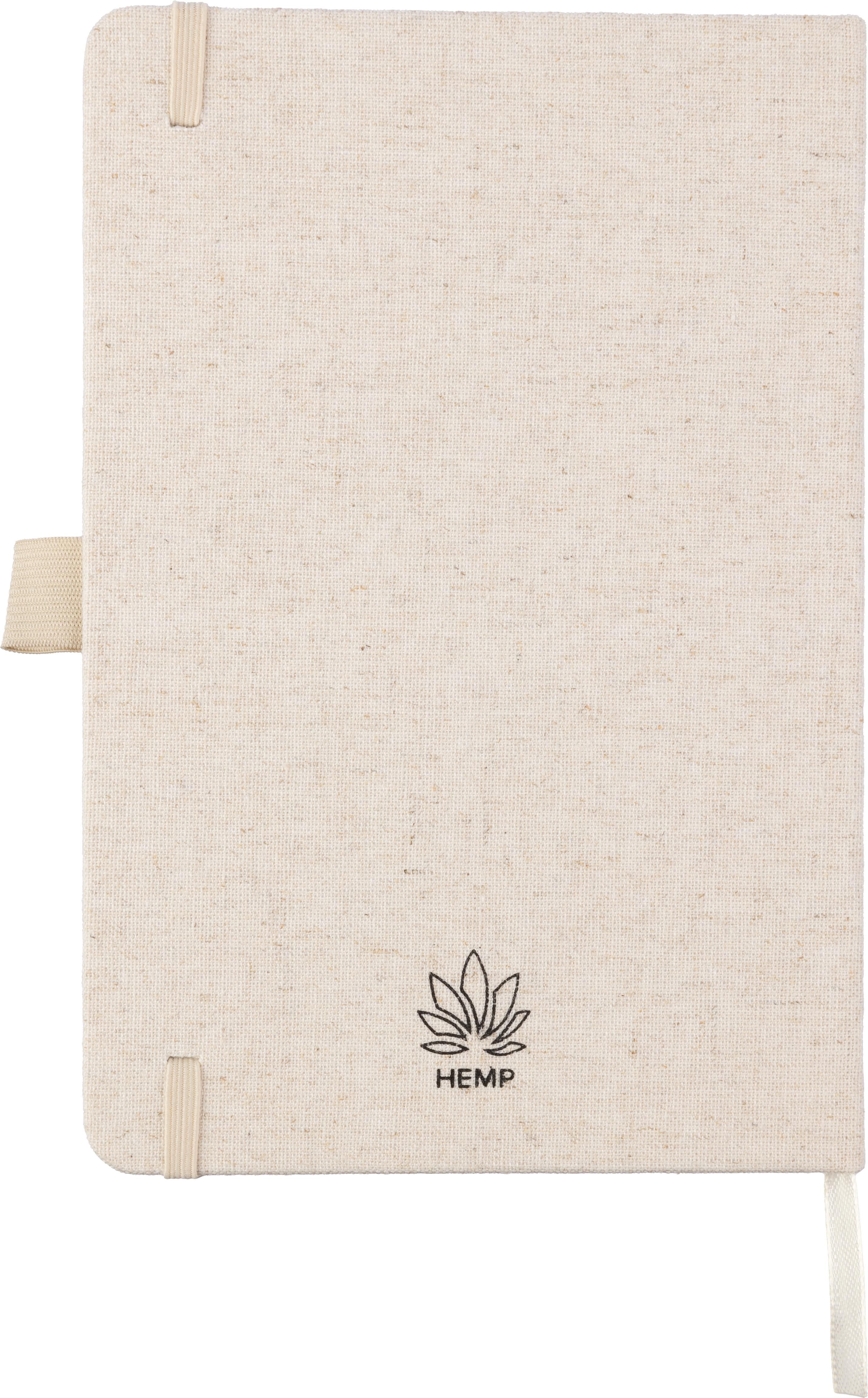 Carnet A5 en chanvre contenant 80 feuilles lignées avec fermeture élastique.