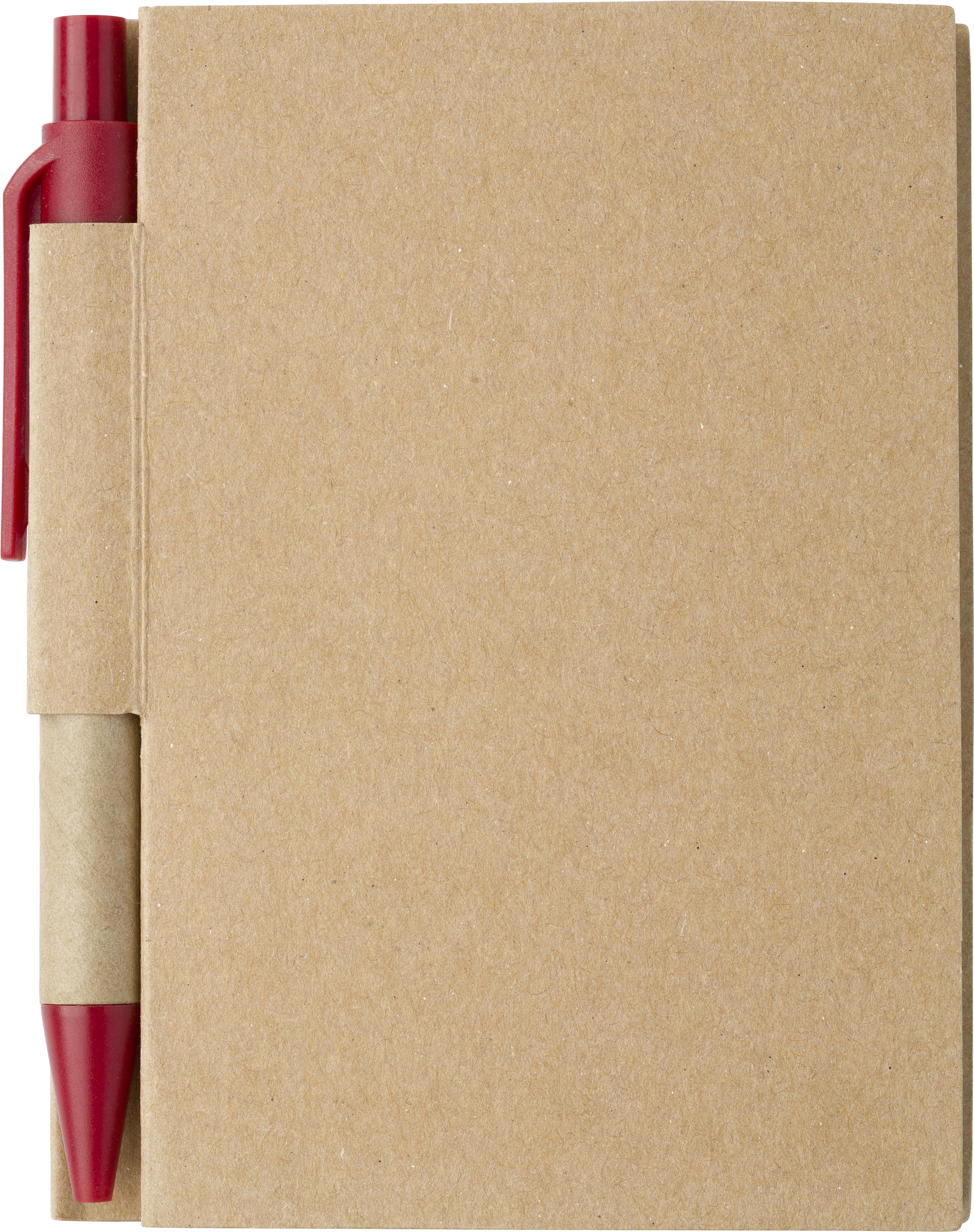 Carnet en carton contenant 80 feuilles lignées, livré avec stylo, mine noire.