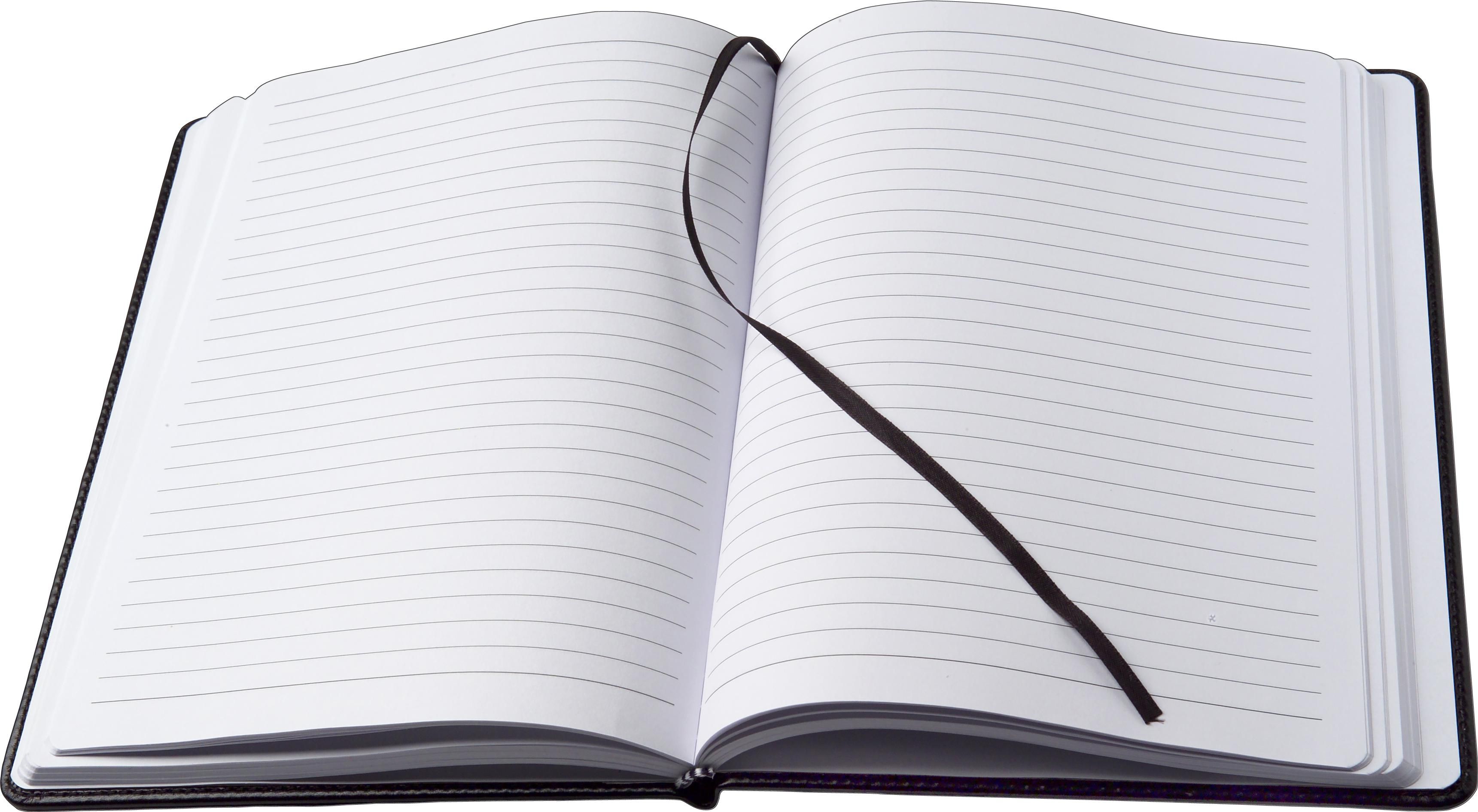 Carnet en PVC et PU format A5 contenant 100 feuilles lignées de 80g avec marque-page.