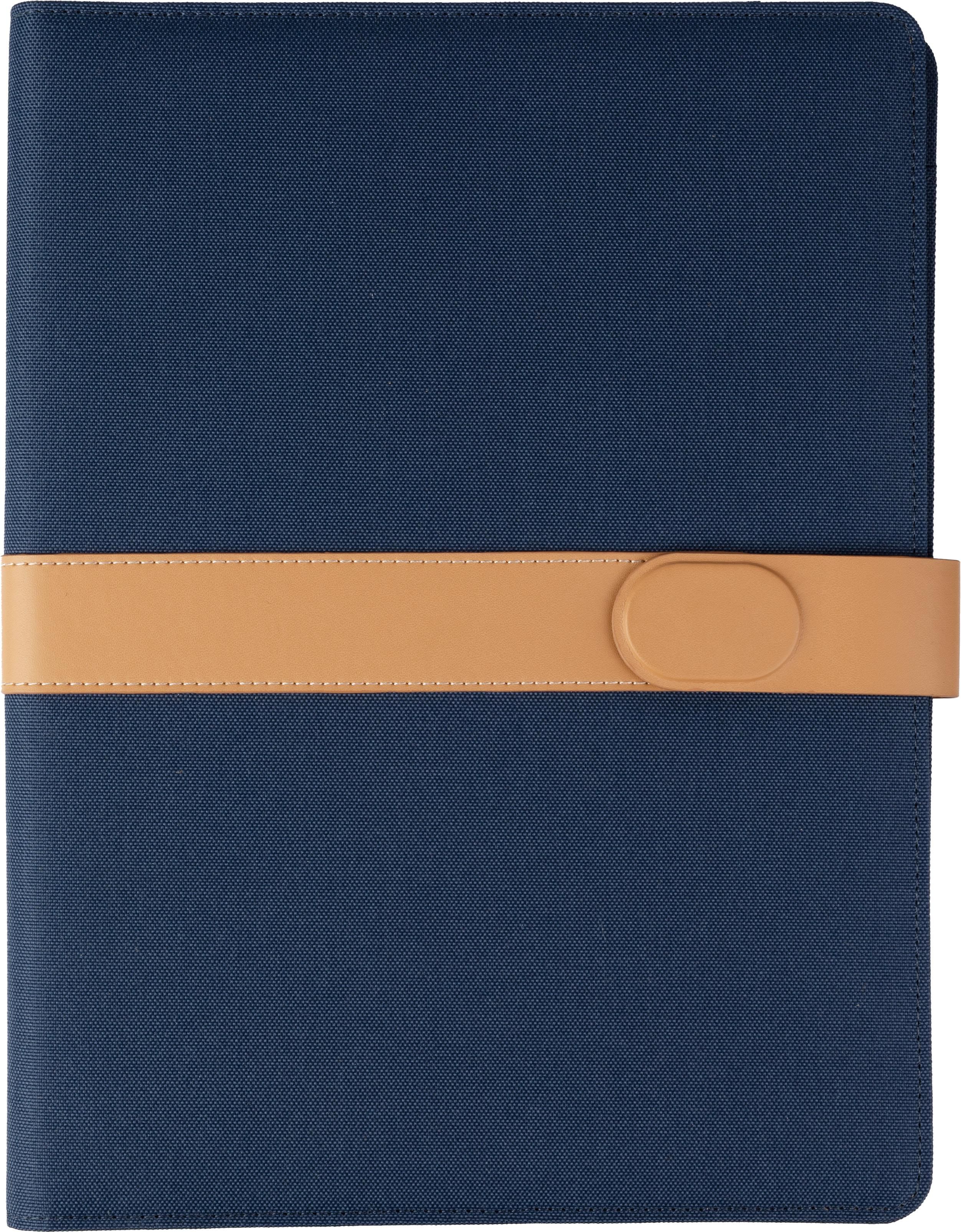 Conférencier A4 en rPET et PU avec fermeture magnétique muni de plusieurs compartiments, livré avec bloc-notes de 20 feuilles lignées, sans stylo, dans une boîte cadeau kraft.