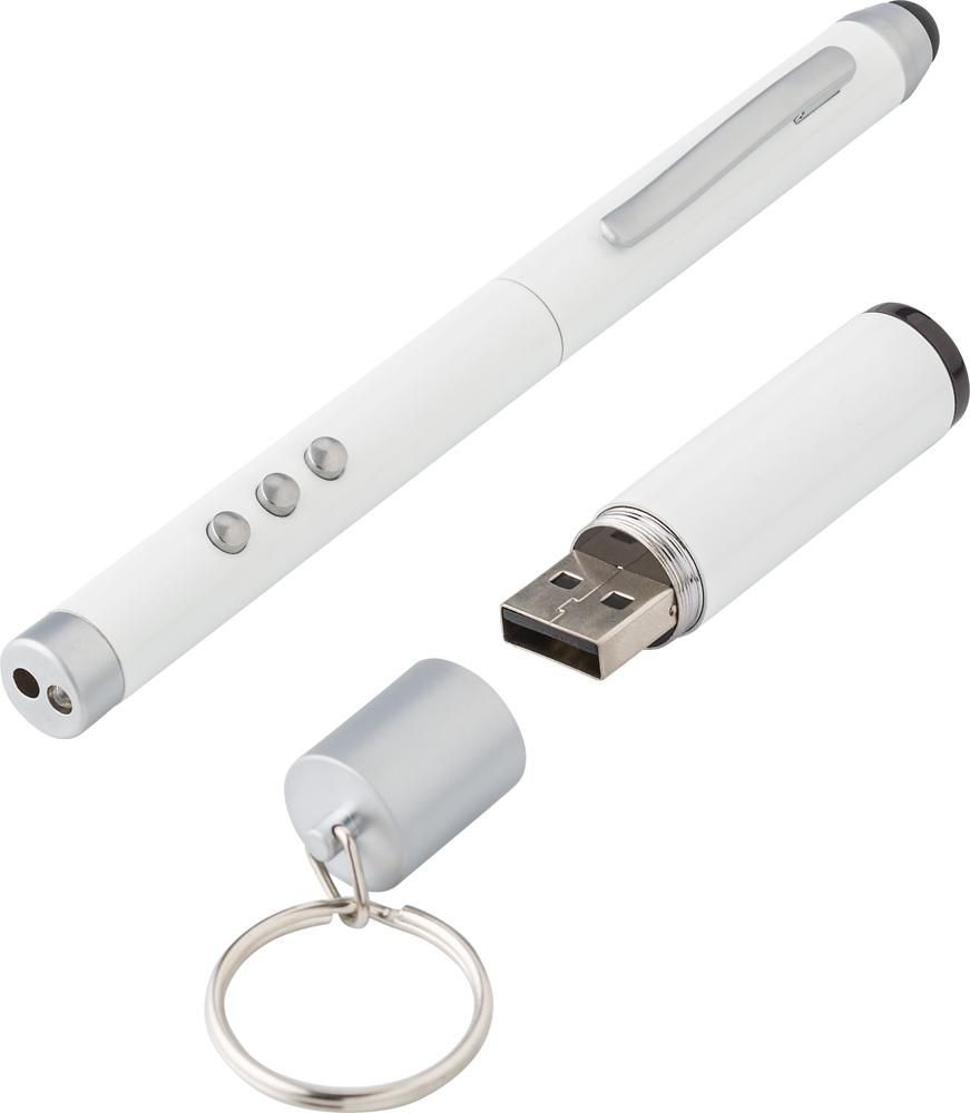 Télécommande de présentation sans fil comprenant un stylo laser et présenteur en métal ainsi qu'un récepteur USB dans une boîte cadeau.