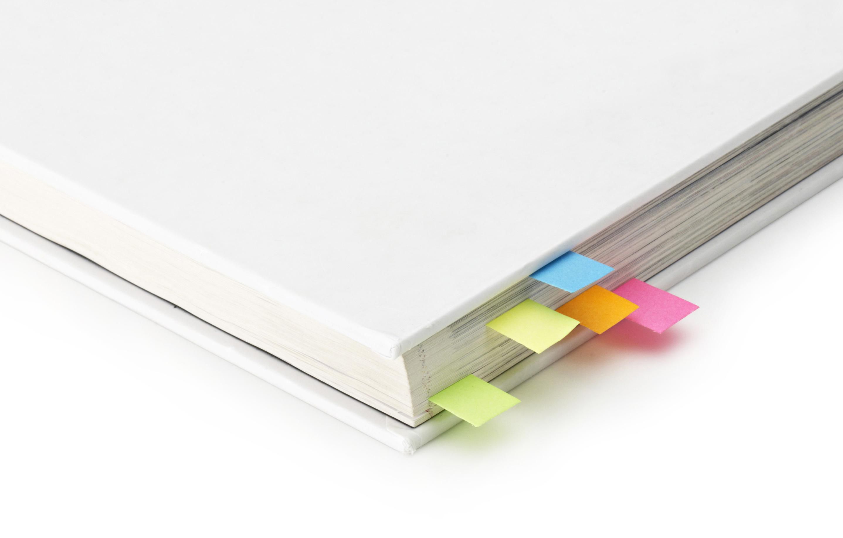 Pochette cartonnée contenant 25 marque-pages repositionnables dans chaque coloris et formats différents et une règle de 12 cm.
