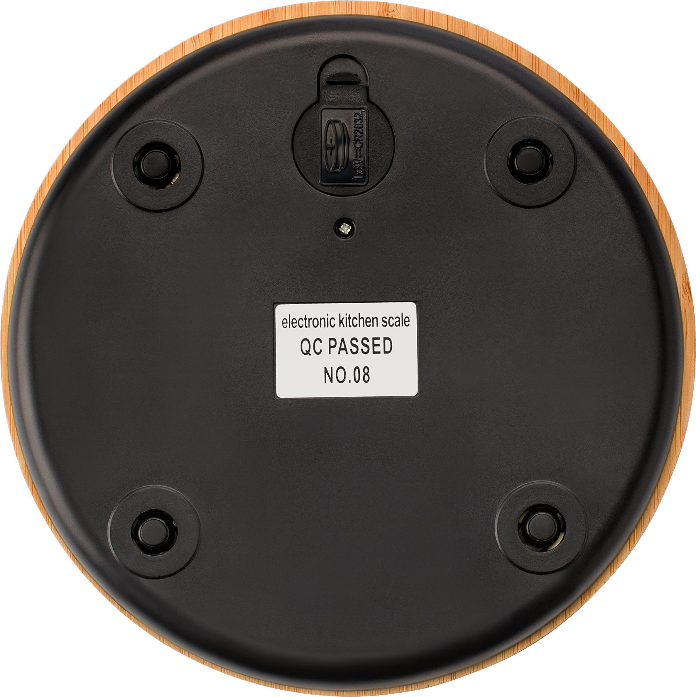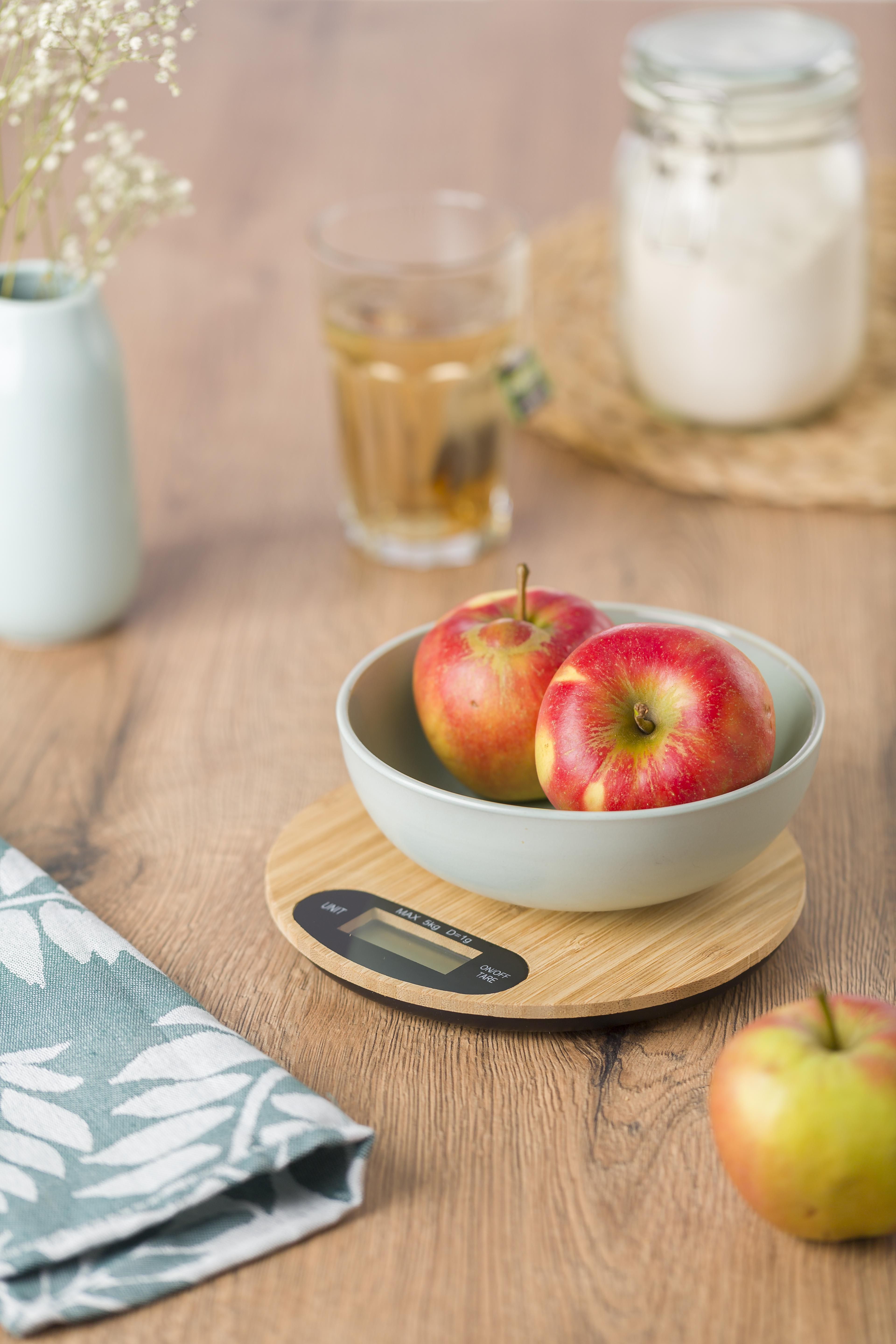 Balance de cuisine en bambou d'une pesée max de 5Kg.