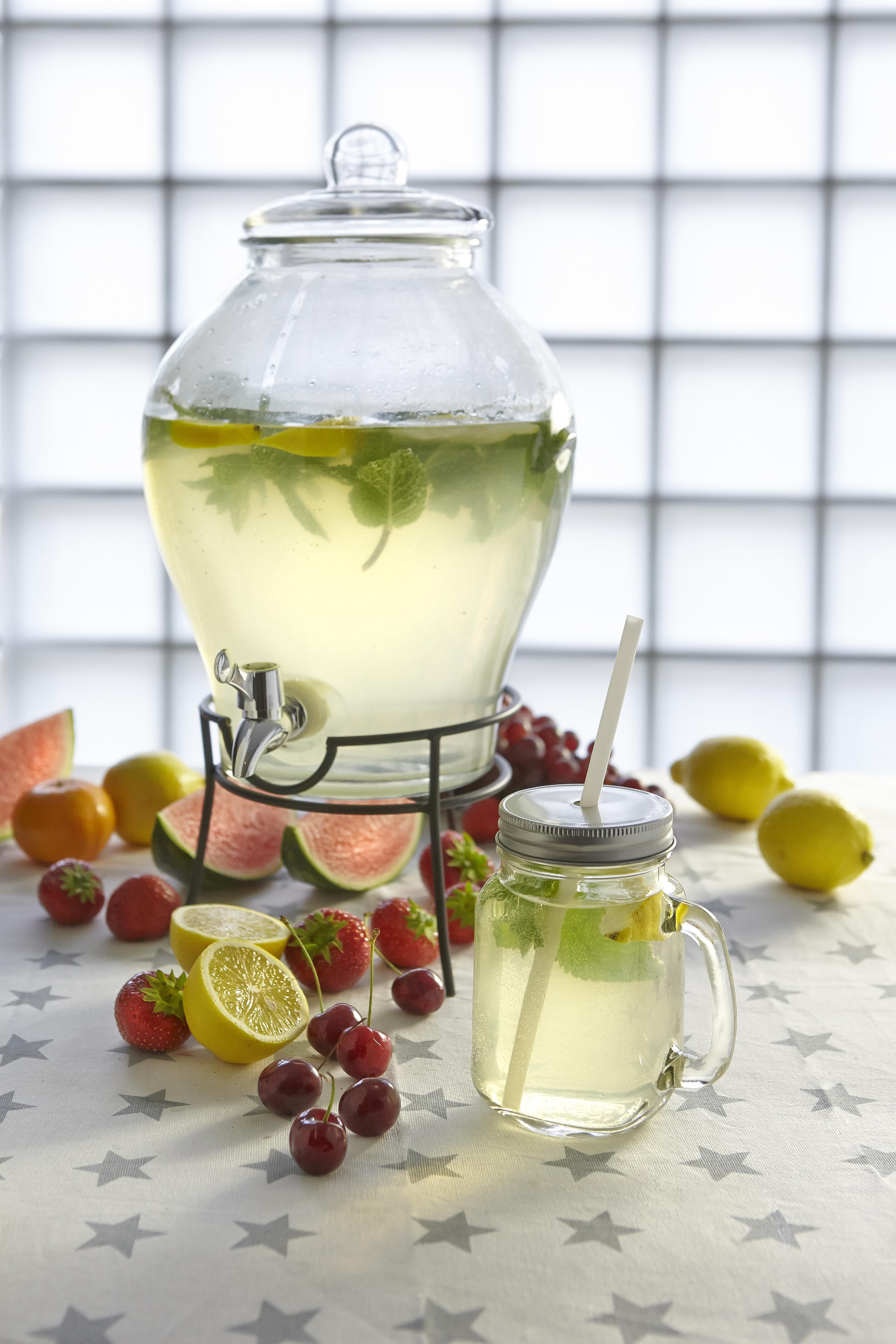 Bocal Mason en verre avec poignée et couvercle laissant passer la paille, d'une contenance de 48 cl (vendu par multiple de 32 pcs).