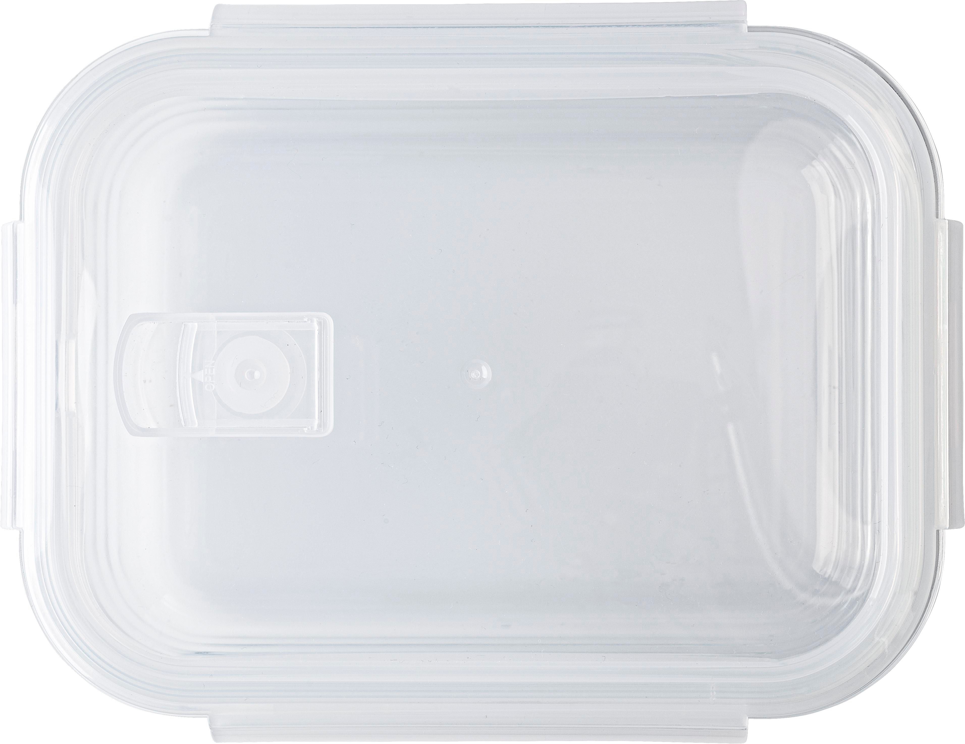 Lunch box en verre borosilicate d'une contenance de 100 cl avec couvercle en plastique utilisable au micro-ondes.