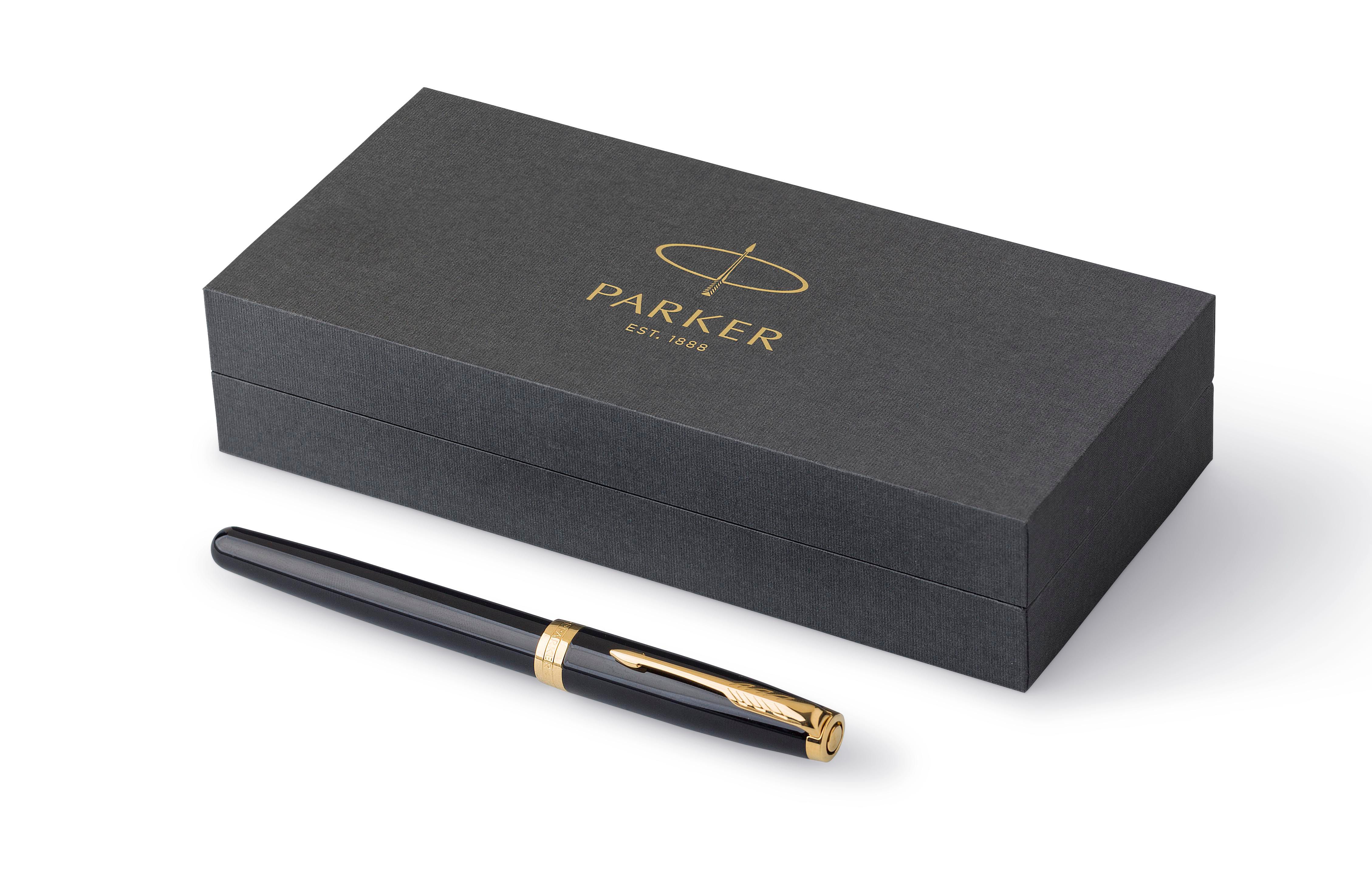 Roller en acier inoxydable et laiton Parker 'Sonnet' dans une boîte cadeau, mine noire.
