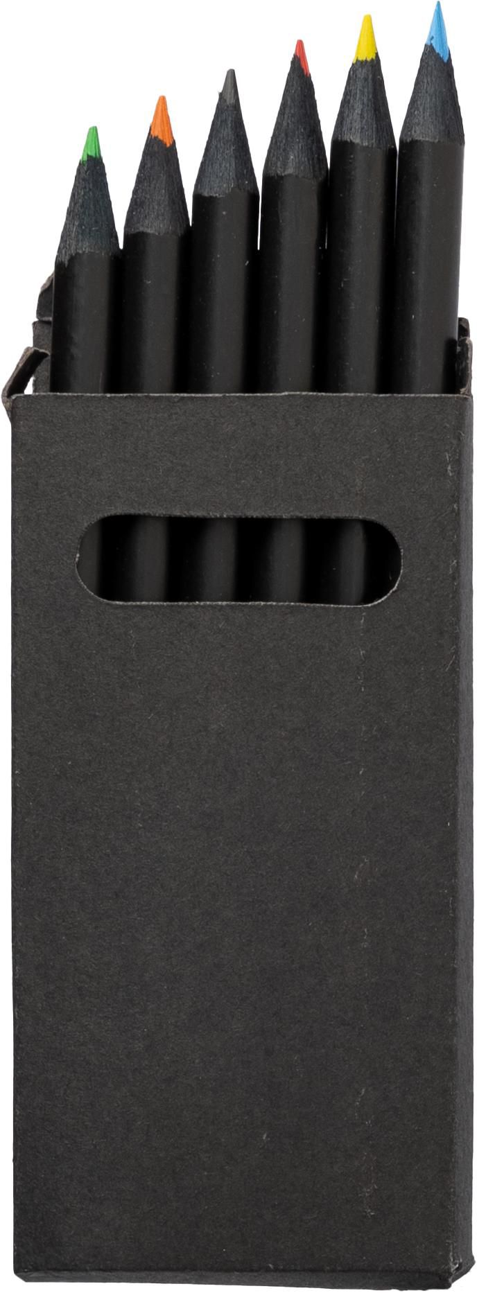 Set de 6 crayons de couleur dans une boîte recyclée.