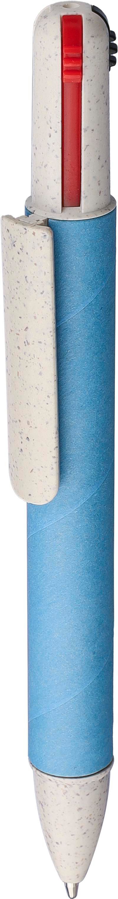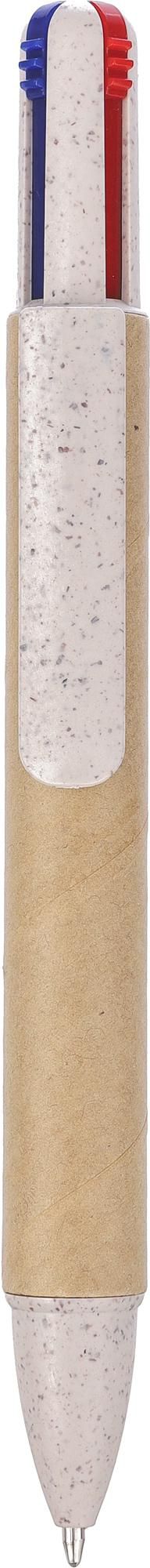 Stylo bille en carton recyclé et paille de blé muni de 4 mines rouge, noire, verte et bleue.