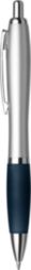 Stylo bille en ABS recyclé avec embase en gomme et clip en métal, mine bleue.