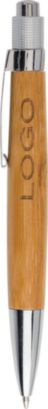 Stylo bille en bambou avec clip en métal, mine bleue.