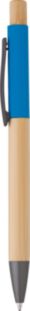 Stylo bille avec corps en bambou et en aluminium et attributs couleur titane, mine bleue.