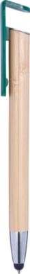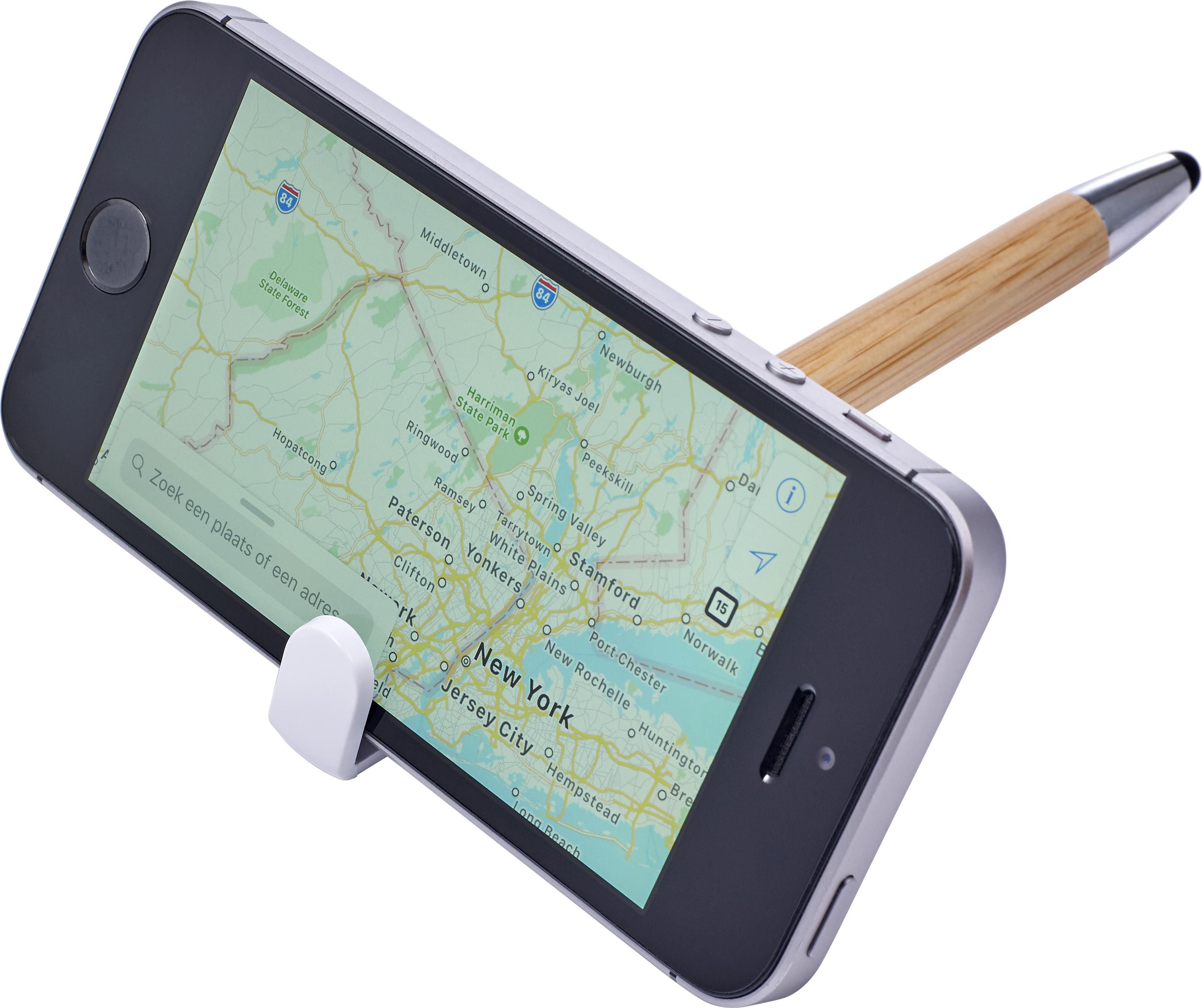 Stylo bille en bambou et plastique avec embout pour écran tactile et support de téléphone, mine bleue.