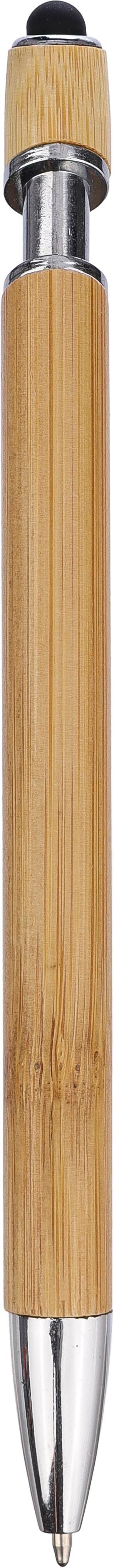 Stylo bille en bambou et plastique avec embout pour écran tactile et clip en métal, mine bleue.