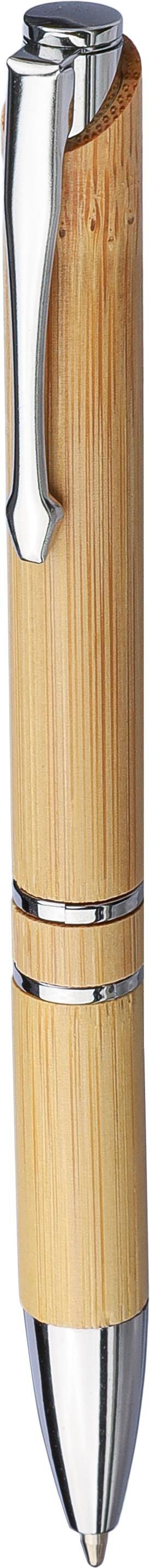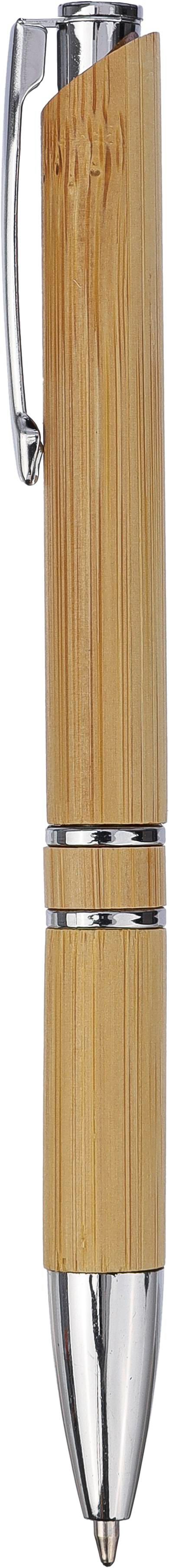 Stylo bille en bambou et plastique avec clip en métal, mine noire.
