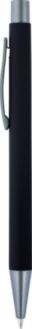 Stylo bille en métal au toucher gomme, mine bleue. Gravé, le rendu ressortira miroir.*Couleur d'impression possible en tampographie : blanc, noir, argent et doré.