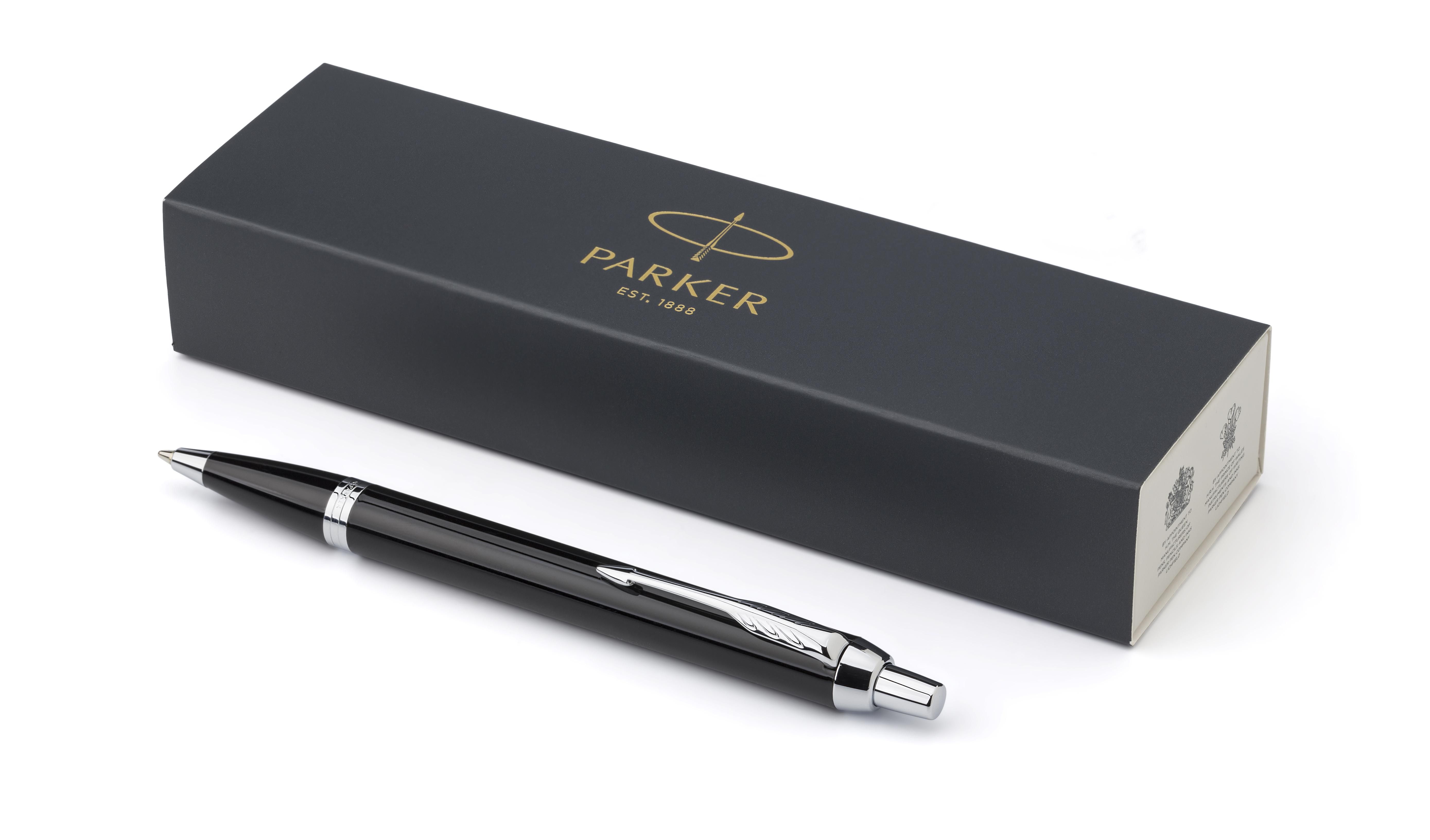 Stylo bille Parker 'IM' en laiton dans une boîte cadeau, mine bleue.