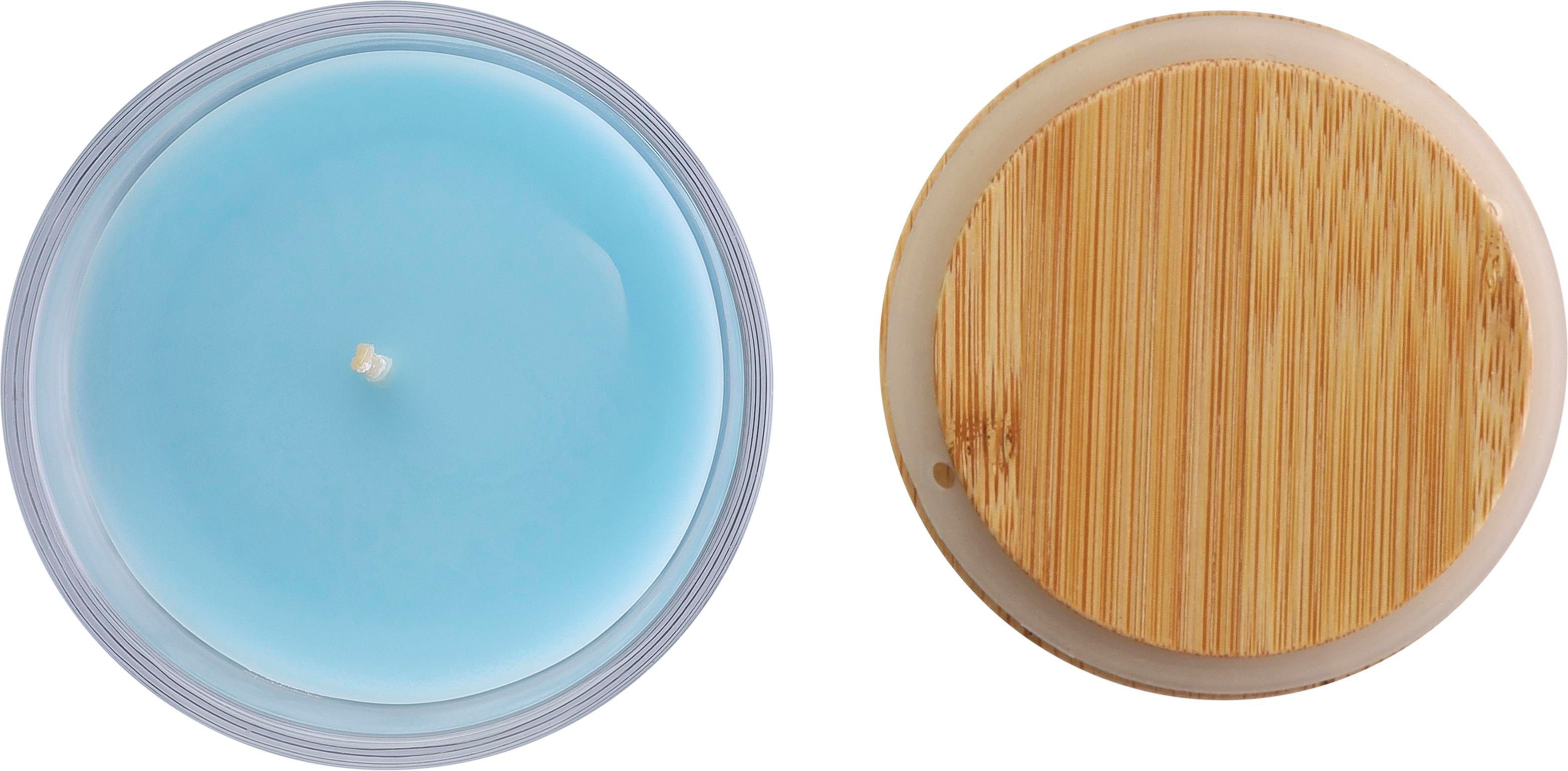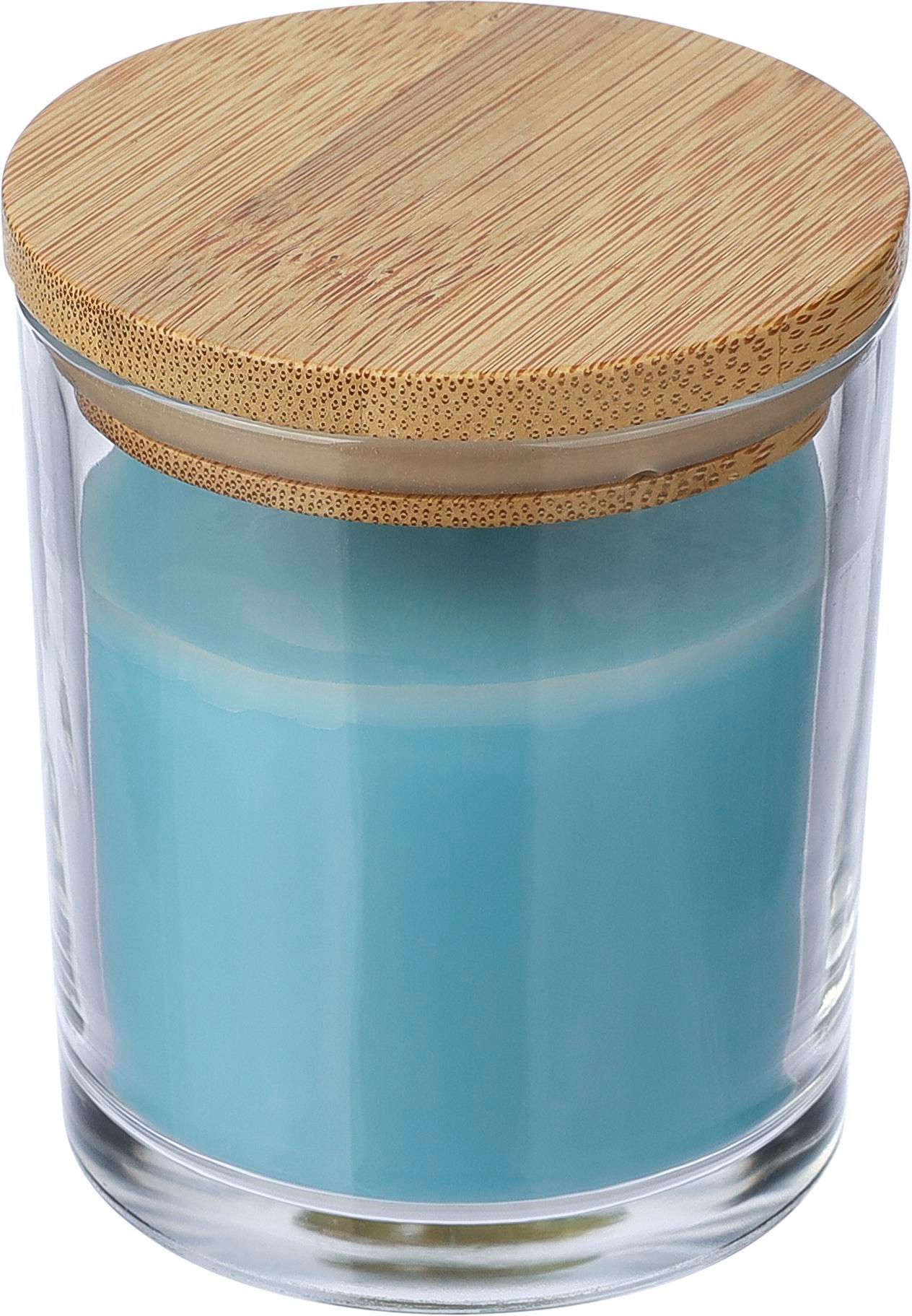Bougie dans un contenant en verre de 120 gr de cire parfum vanille et un couvercle en bambou, d'une durée de 20H, livrée dans un tube cadeau blanc.