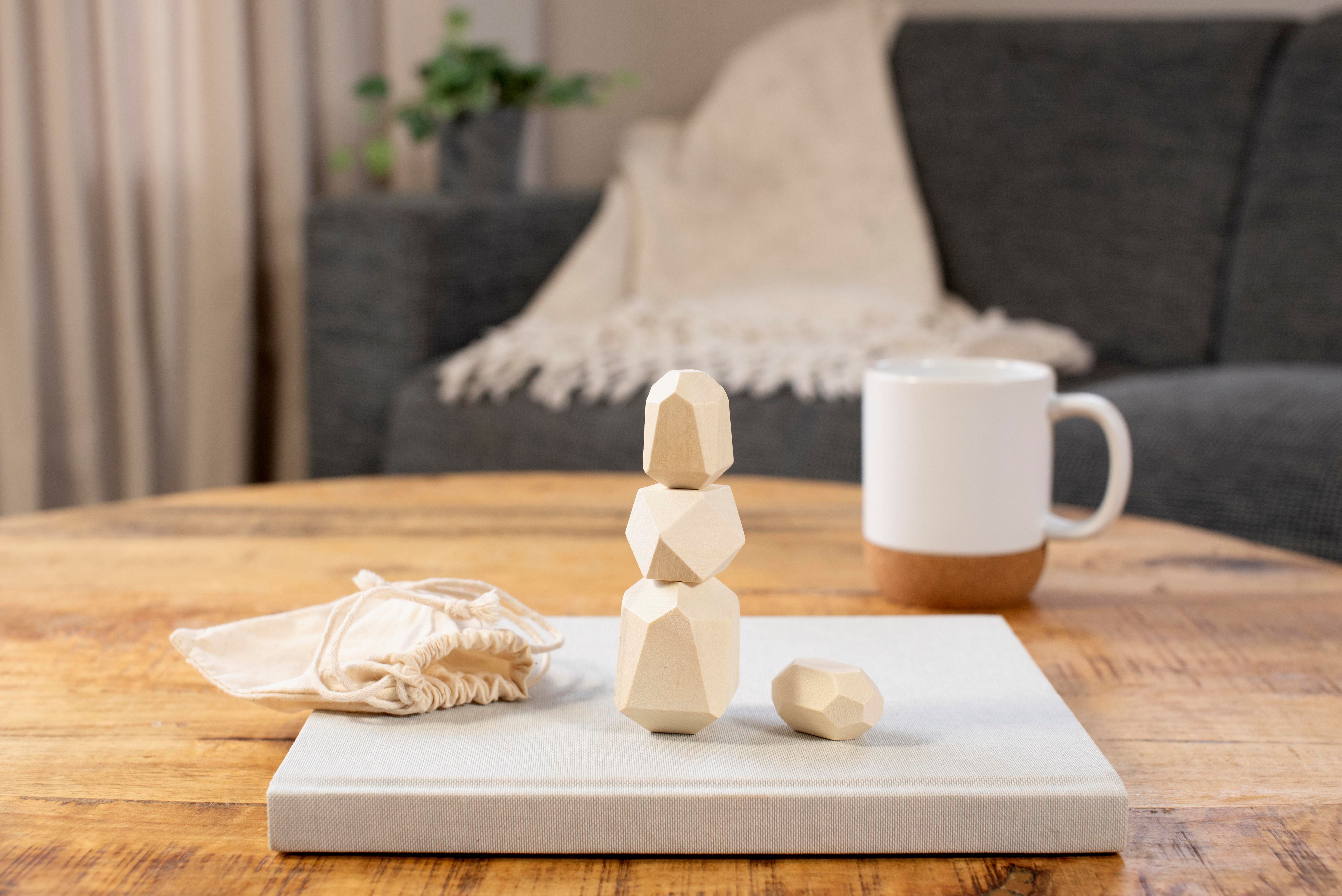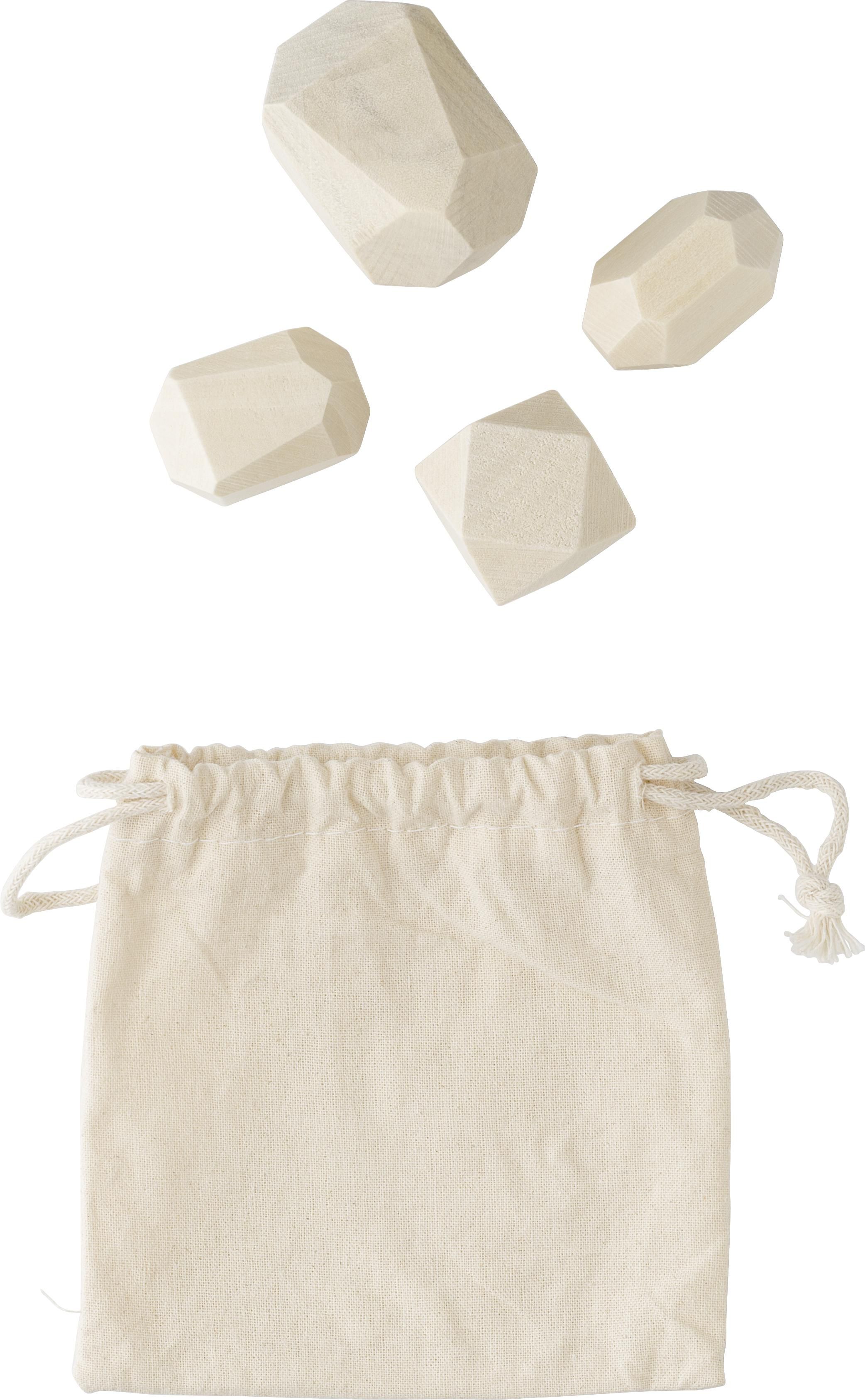 Jeu d'adresse composé de 4 rochers en bois dans une pochette en coton.