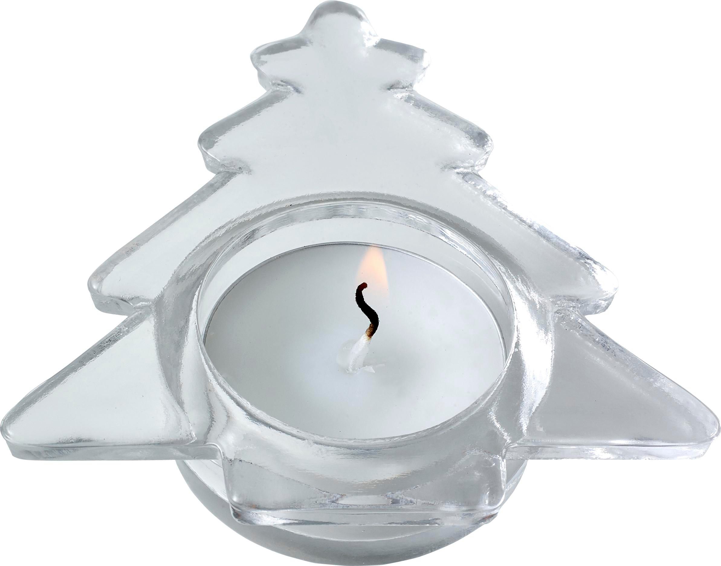 Support en verre avec bougie conditionnés dans une boîte cadeau.