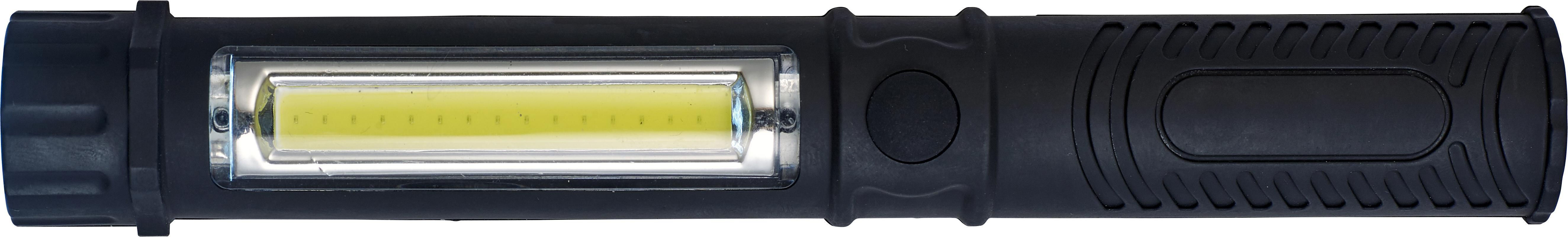 Torche en ABS munie de LEDS COB et d'une LED blanche, équipée d'un aimant et d'une pince, piles incluses.