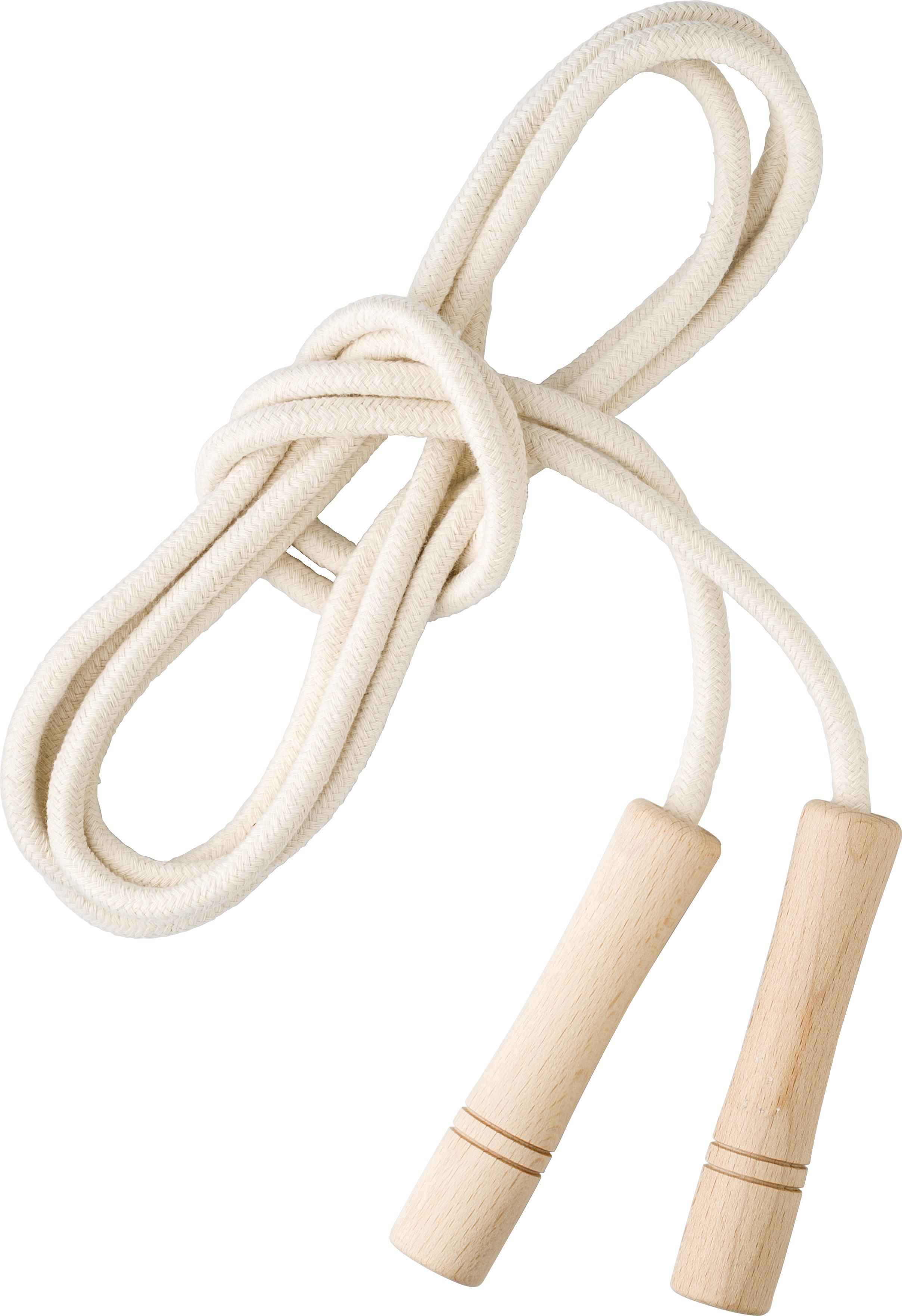 Corde à sauter d'une longueur de 250 cm en coton et polyester avec poignées en bois, livrée dans une pochette en coton.