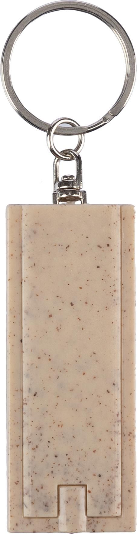 Porte-clés en paille de blé avec torche LED dans un polybag recyclé.