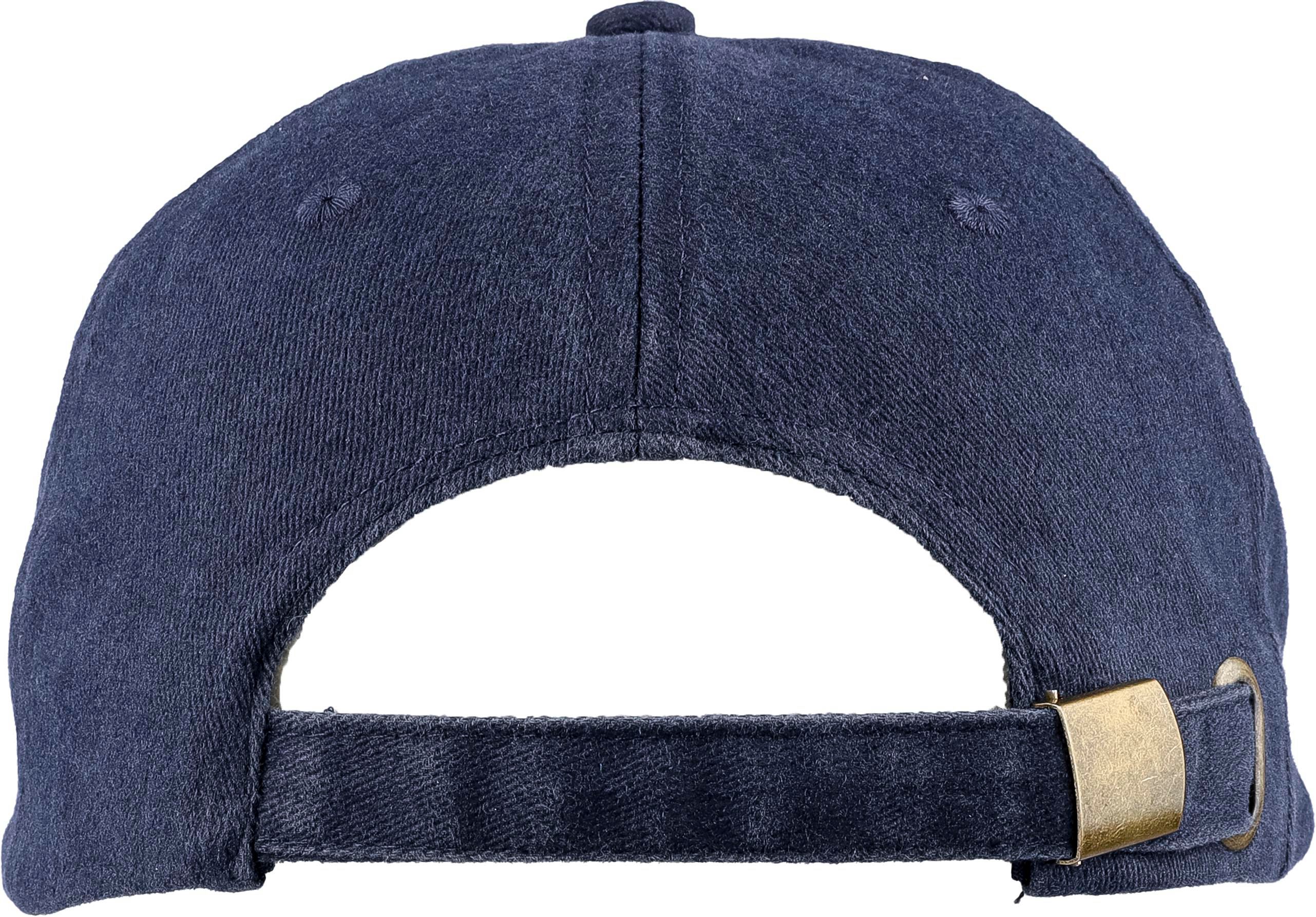 Casquette en coton 240 g/m² de 5 panneuax finition délavée avec patte métal en laiton.