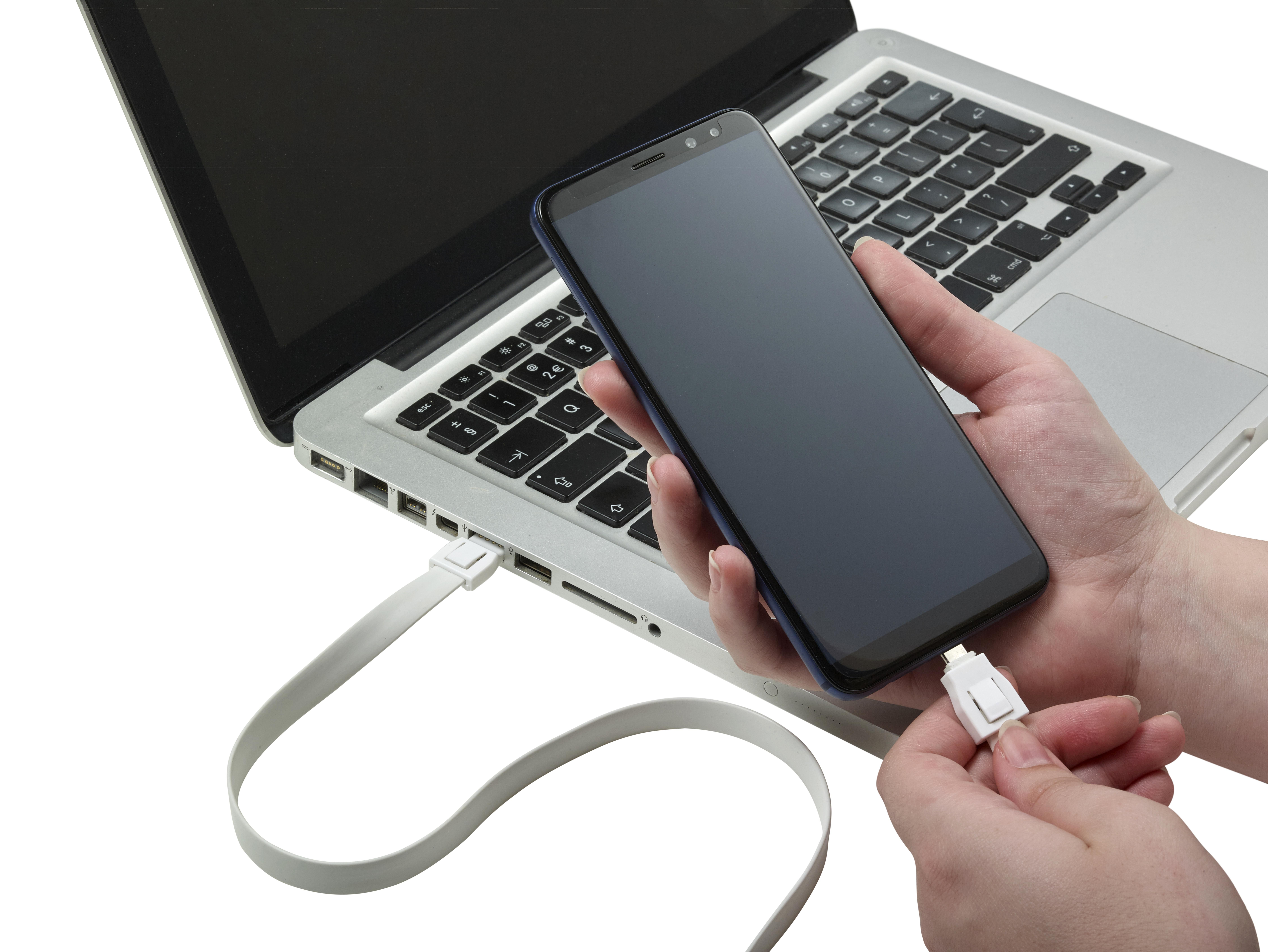 Lanyard comprenant une prise USB/micro USB et Lightning d'une longueur de 90 cm.